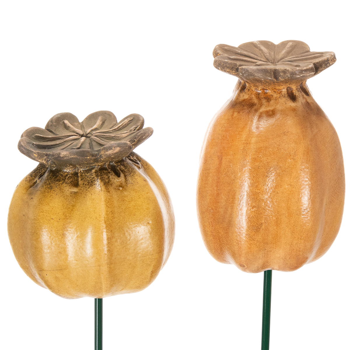 Sodas – tai vieta atsipalaiduoti ir pailsėti, o tinkami akcentai gali atlikti lemiamą vaidmenį. Mūsų sodo kuolai su aguonų galvutėmis – tikras jūsų lauko erdvės akcentas. Klasikinė aguonų galvutės forma, derinama su šilta, ruda keramika ir 7 cm skersmeniu, harmoningai dera prie bet kokios žalios oazės. Dviejų kuolų rinkinys ypač tinka, jei norite stilingai papuošti gėlynus ar vazonus.