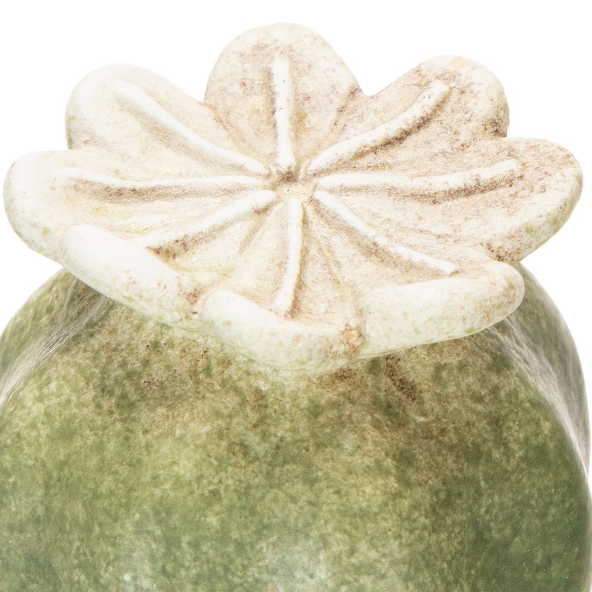 Ši sodo dekoracija su dviem aguonų ankštimis žavi ne tik dėmesiu detalėms, bet ir aukštos kokybės keramikos bei metalo dirbiniais. 60 cm aukščio ir 7 cm skersmens aguonų ankštys yra subtilios, tačiau įspūdingos, suteikdamos žavingų akcentų gėlynams, apvadams ar terasoms. Jų žalia spalva spinduliuoja ramybę ir natūralumą, todėl puikiai papildo kitas augalų dekoracijas.