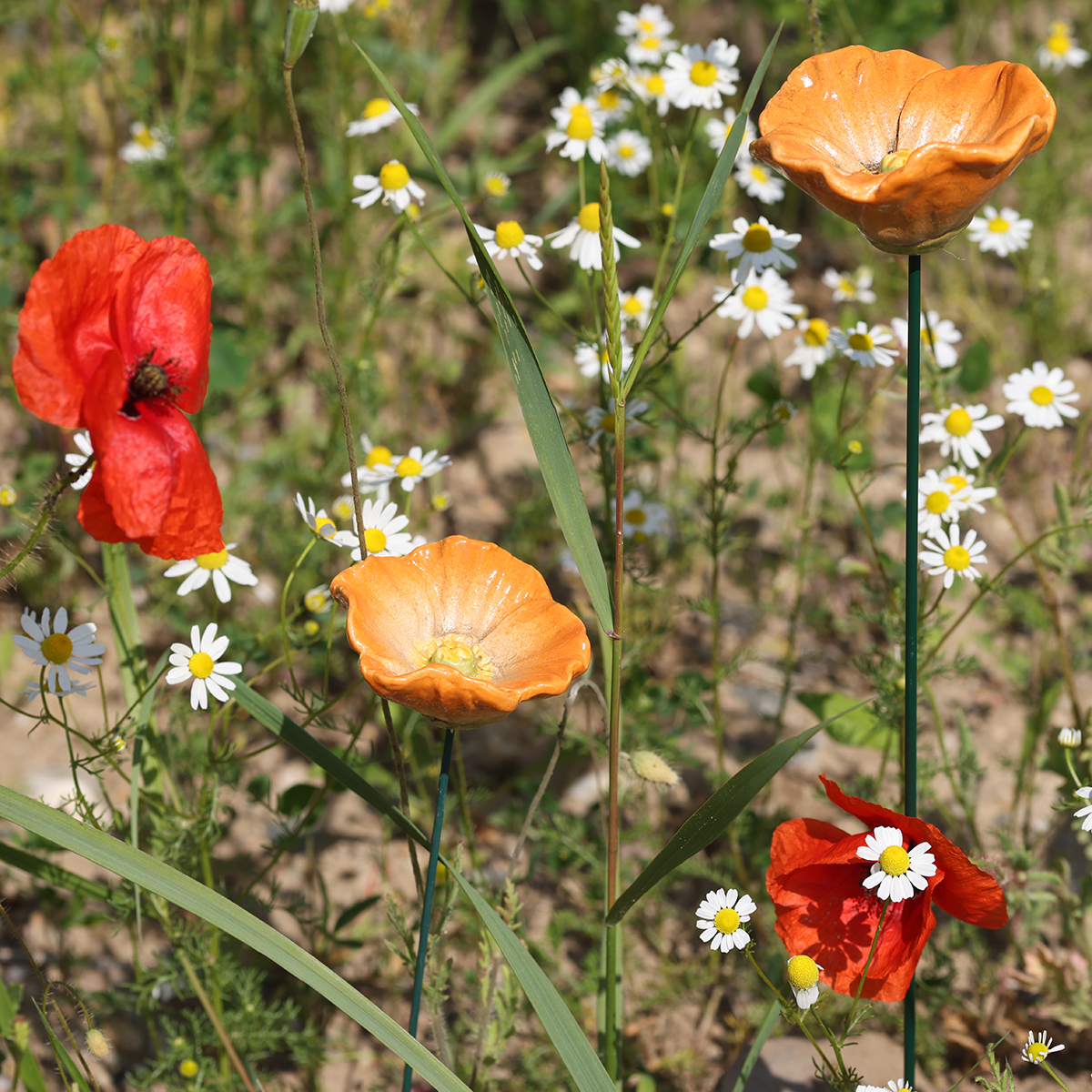 Mūsų aguonų sodo kuolai sujungia patrauklų dizainą ir aukščiausią kokybę. Pagaminti iš kruopščiai apdirbtos keramikos, jie žavi savo aukšta kokybe ir įmantriomis detalėmis. Šilti oranžiniai ir balti žiedlapių atspalviai sukuria gyvybingą efektą, praskaidrindami bet kokį sodą. Dėl rankų darbo išvaizdos kuolai spinduliuoja menišką natūralumą, kuris puikiai dera prie Viduržemio jūros ar kaimiško stiliaus sodo kompozicijos. Derinkite šias gėles su žaliais augalais arba neutraliais vazonais – jie harmoningai susilieja ir kartu sukuria išskirtinį įspūdį.