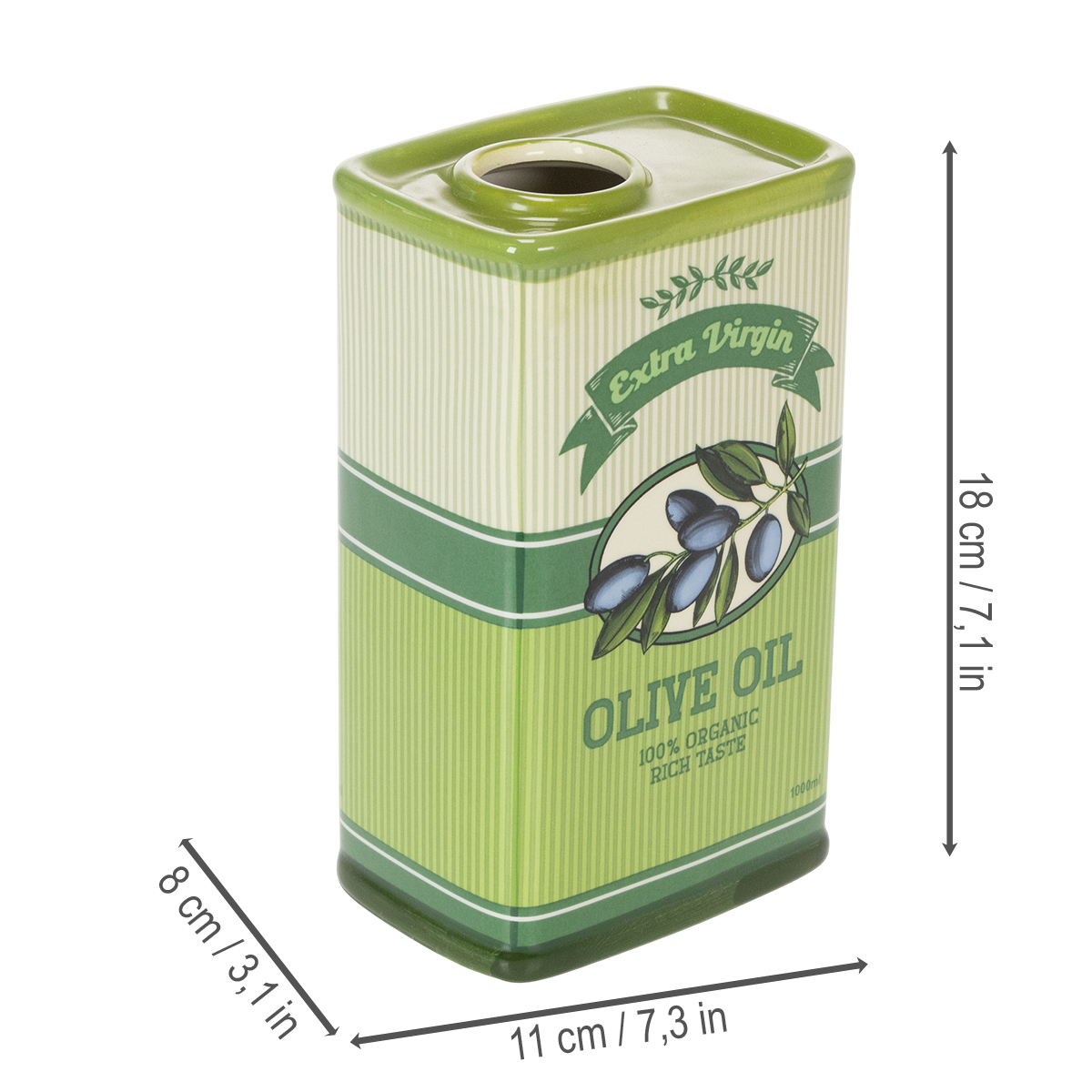 Alyvuogių aliejaus vaza, keraminė, idealiai tinka virtuvės dekoravimui ir Viduržemio jūros regiono stalui, 18 cm