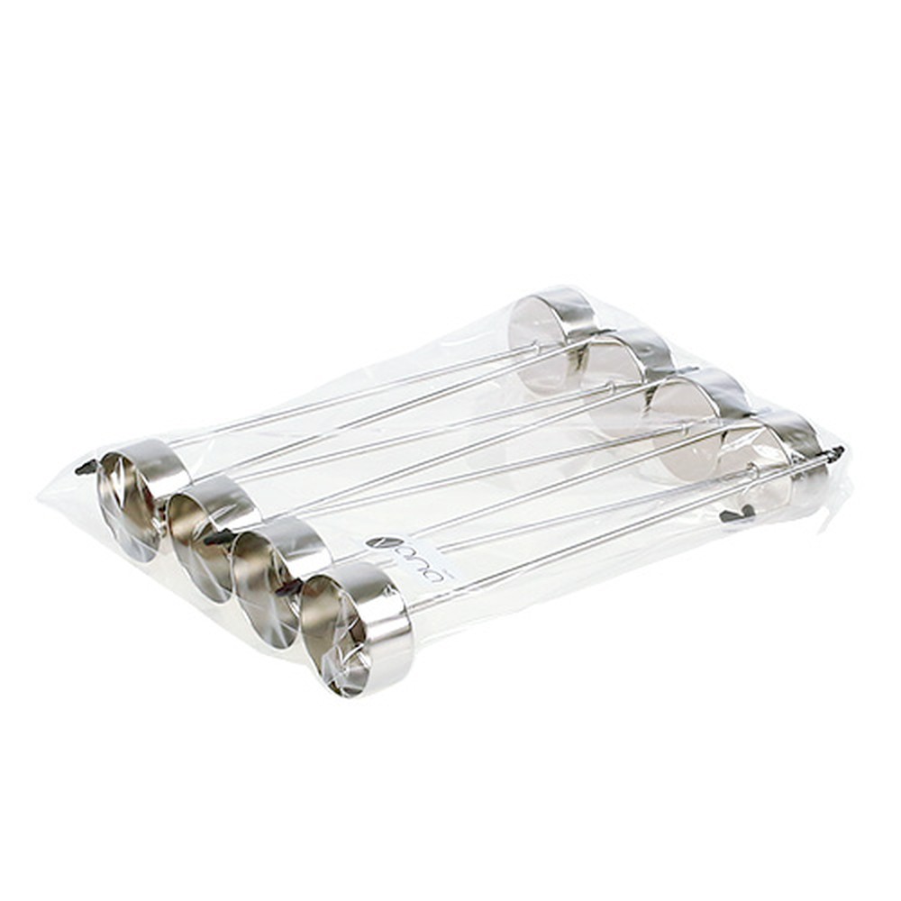 Arbatinės žvakutės laikiklis, skirtas klijuoti į sidabrą, tiekiamas pakuotėse po 8 ir yra maždaug 21 cm aukščio. Įtvaras yra apie 19,5 centimetro ilgio, o žvakių laikiklio išorinis skersmuo yra apie 4 centimetrai, o vidinis - apie 3,8 centimetro.