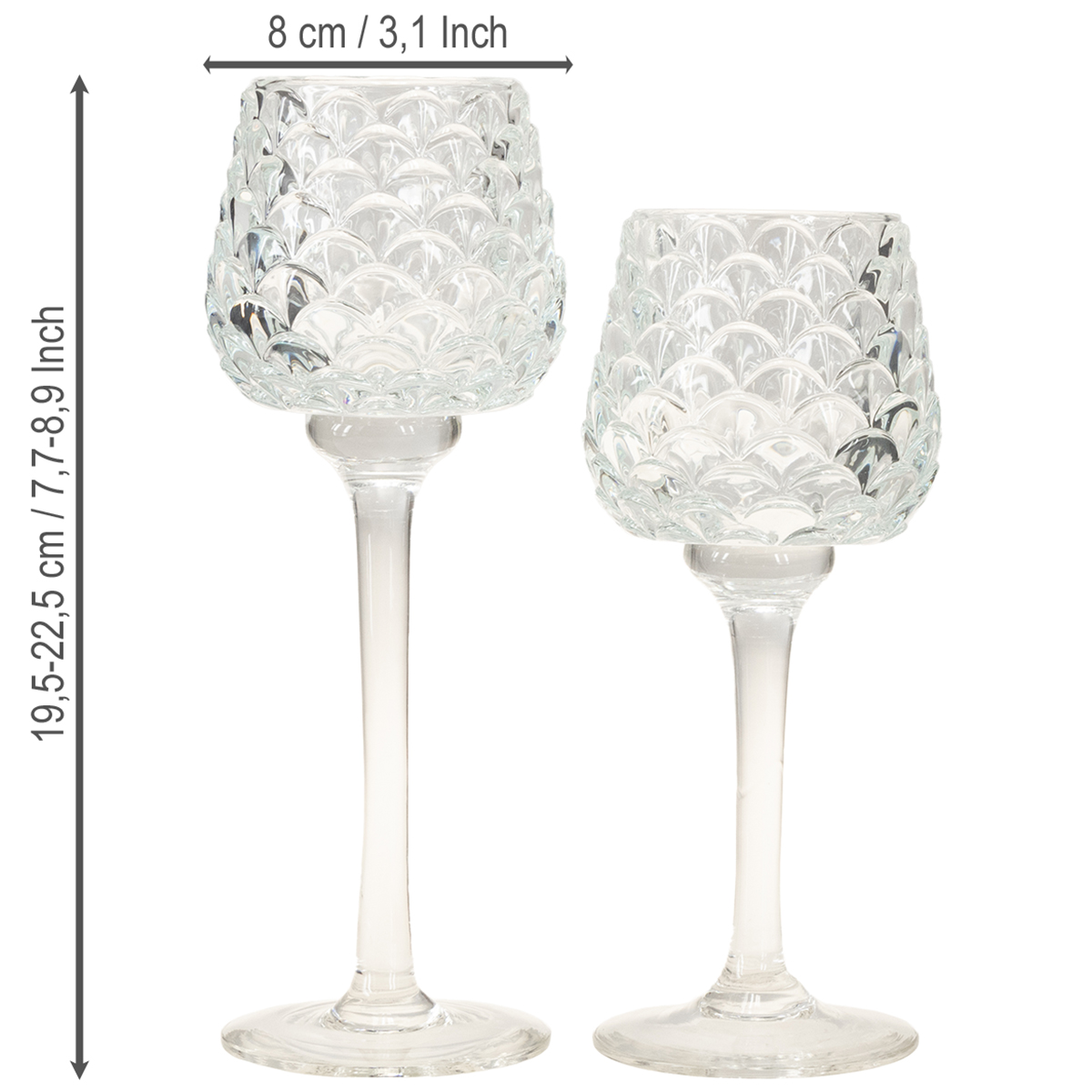 Arbatinės žvakutės stiklinis kūgio formos su pagrindu, aukštis 19,5/22,5 cm, 2 vnt. rinkinys