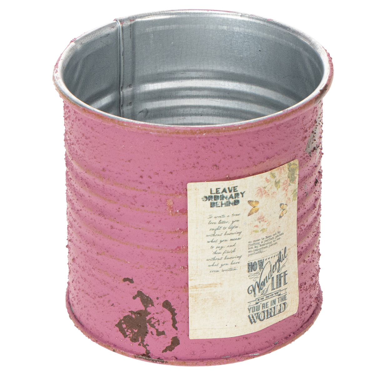 Violetinės dekoratyvinės skardinės puikiai atrodo su šio asortimento tamsiai rožinės ir kreminės spalvos skardinėmis – kaip gerai, kad parduotuvėje galima įsigyti trijų skirtingų dydžių metalinių gėlių vazonų! Taigi galite pasinerti į nostalgiškas metalines dekoracijas pagal savo nuotaiką!