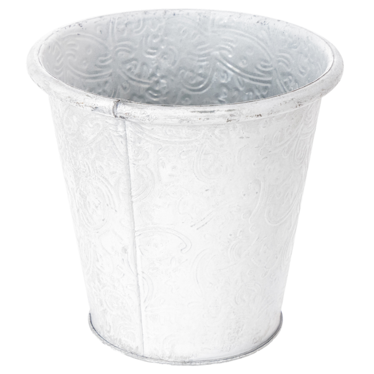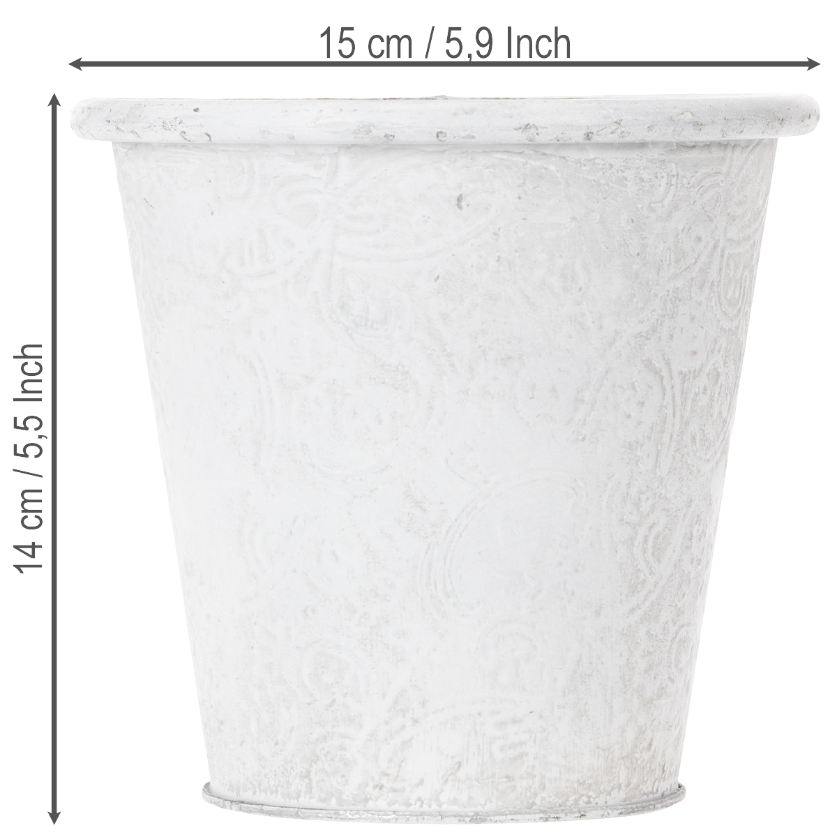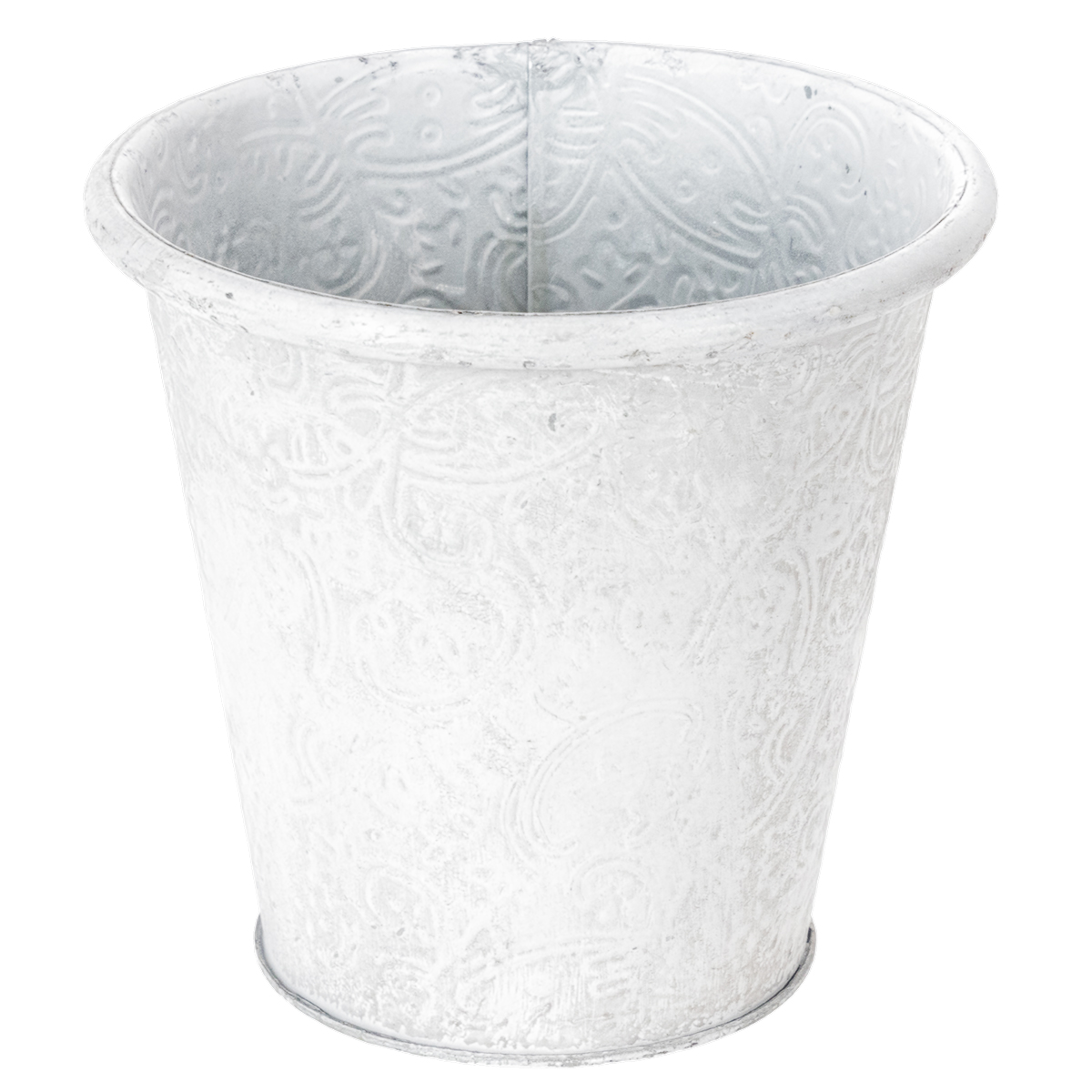 Augalų vazonas su ornamentais, vazonas, metalinis indas, baltas, Ø15,5 cm, aukštis14,5 cm