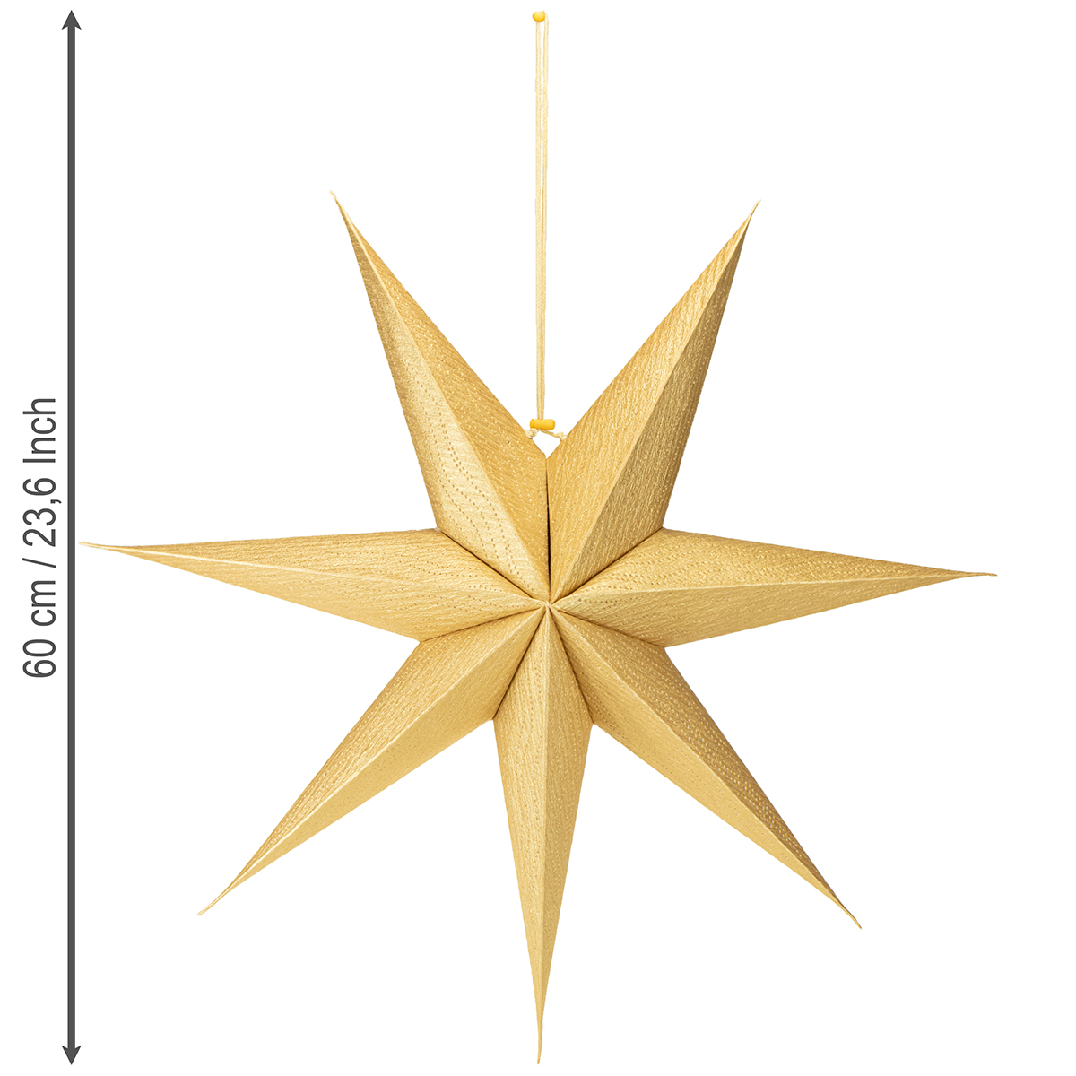Produkto pavadinimas: Auksinė popierinė žvaigždė apšvietimui, Kalėdų žvaigždė Ø60 cm