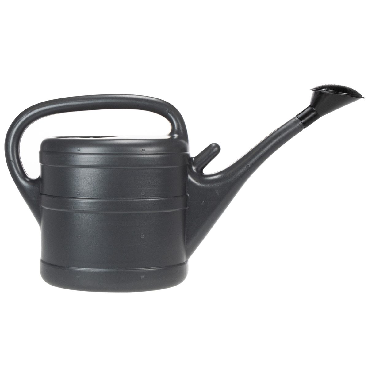 Antracito spalvos laistytuvas yra patvarus ir gali būti pripildytas iki 10 litrų skysčio.
