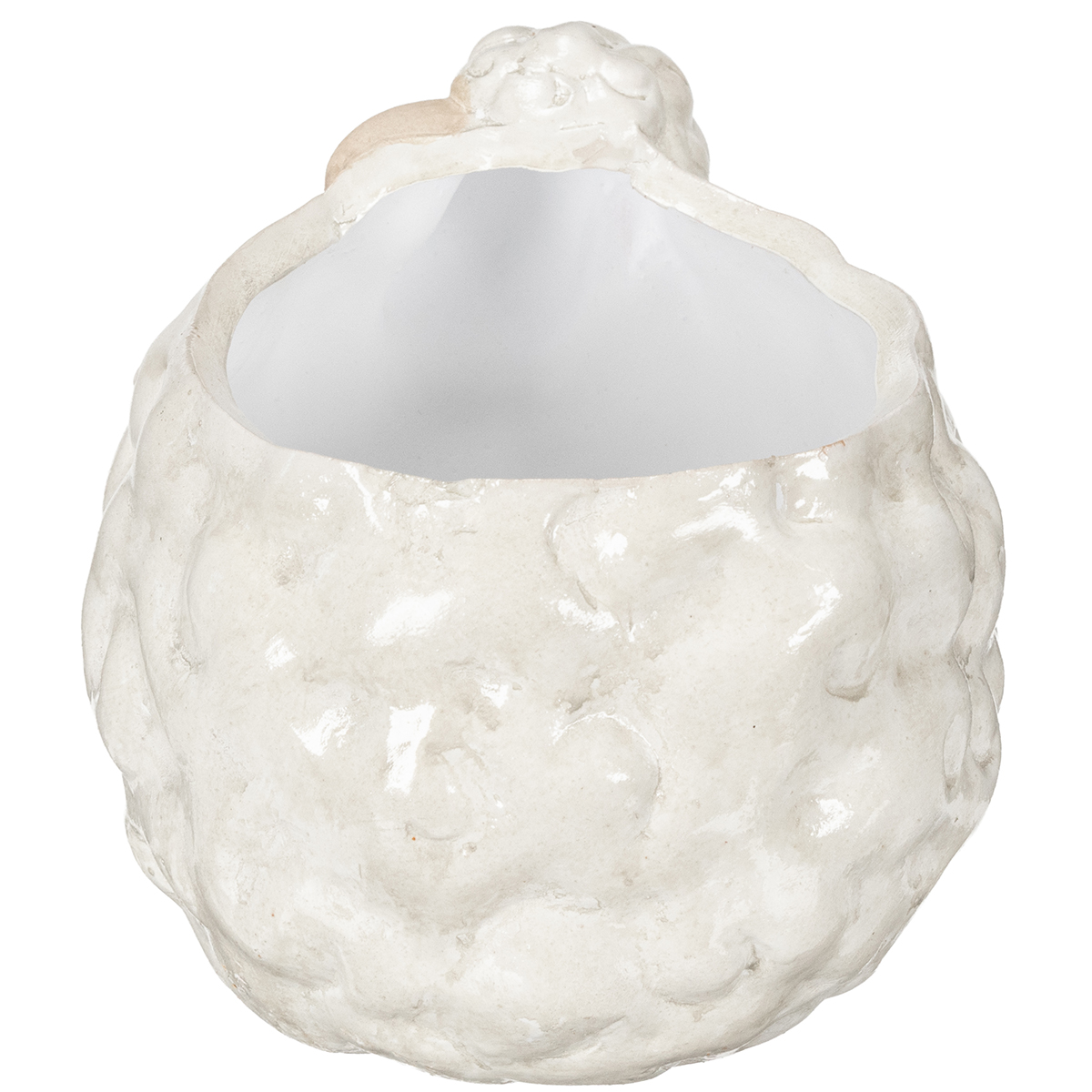 Šis keraminis avių vazonas pagamintas iš aukštos kokybės baltos keramikos ir su meile apipavidalintas, pasižymi puria tekstūra ir mielu veidu. Ši rankų darbo detalė suteikia žaismingumo ir gaivumo, tačiau nėra kičinė. 17 cm skersmens ir 13 cm aukščio šis dekoratyvinis elementas yra universalus augalų aksesuaras, tinkantis net ant siaurų lentynų ar palangių.