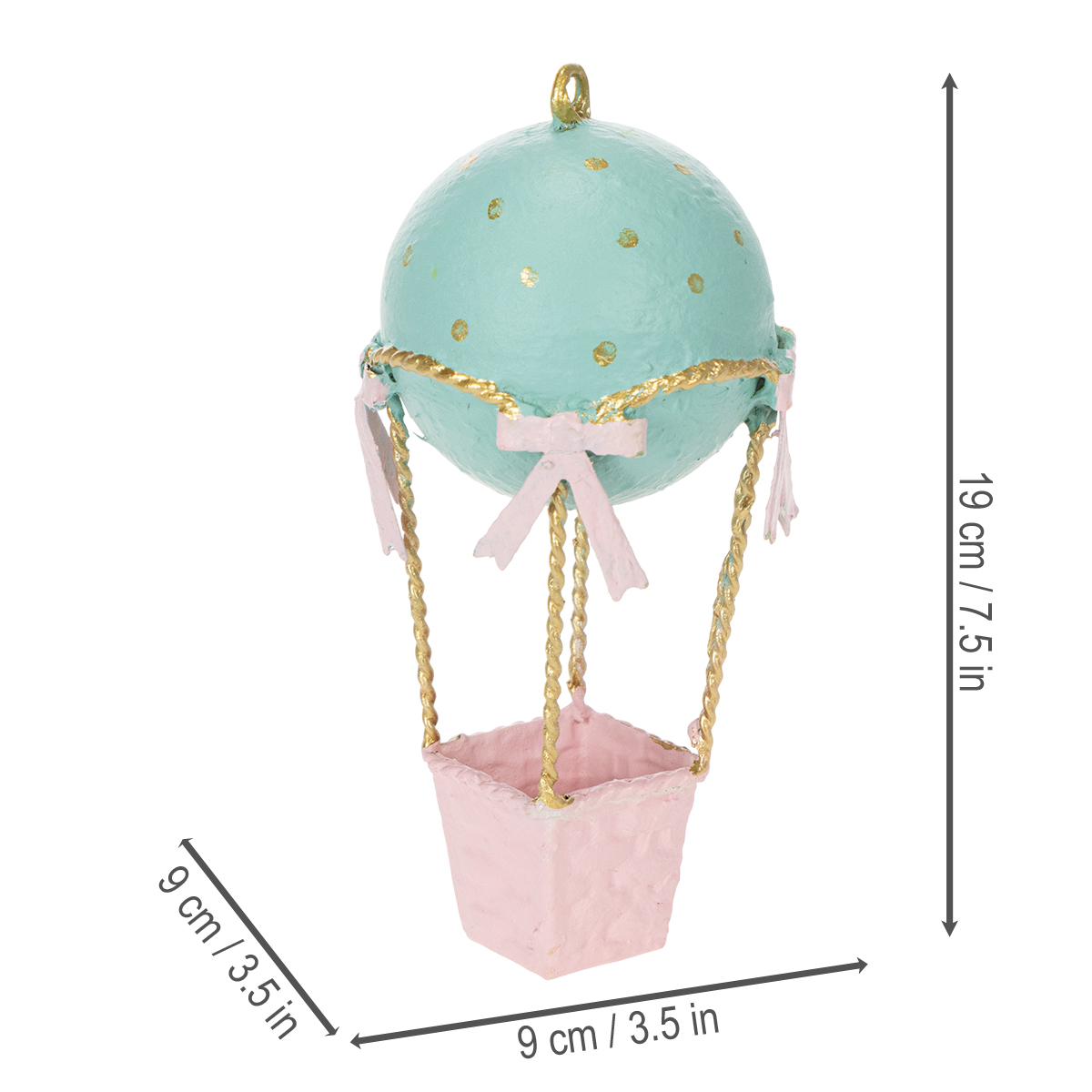Svajojate apie nostalgišką dekorą ir švelnius pastelinius atspalvius, kurie bet kurį kambarį paverstų ramybės oaze? Mūsų subtilus oro baliono dekoravimas suteiks jūsų namams lengvumo ir fantazijos. Švelnios pastelinės mėlynos, matinės rožinės ir elegantiškų auksinių detalių derinys akimirksniu sužadins romantišką atmosferą ir sukurs nesenstantį dizaino akcentą. Nesvarbu, ar tai būtų apgalvota dovanos idėja, ar ypatinga vaiko kambario puošmena, šis mini oro balionas, pagamintas iš polirezino su metaliniu pakabuku, yra akį traukiantis ir emocijas žadinantis akcentas. Patogus 19 centimetrų skersmens balionas puikiai tinka papuošti langus, lentynas ar balkonus. Naudokite jį kaip originalų namų aksesuarą ir mėgaukitės žavingais akcentais, kuriuos jis suteikia bet kur.