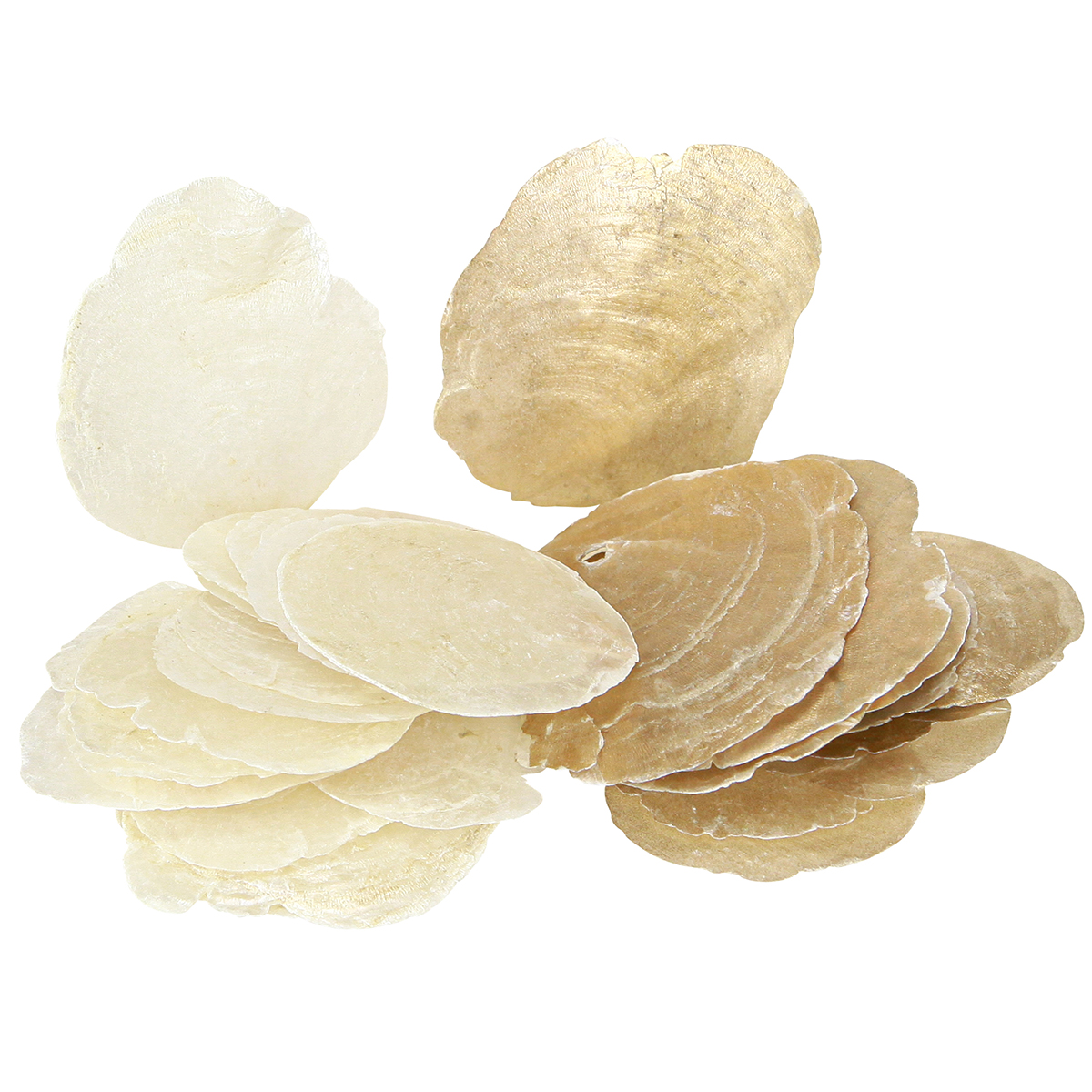 - 60 Capiz diskų: 30 natūralios baltos spalvos, 30 aukso