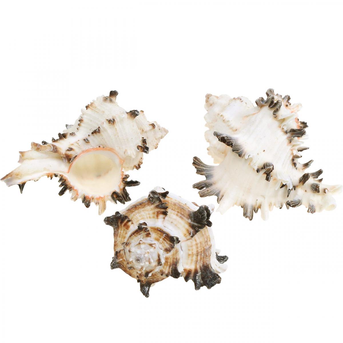 Gražūs dekoratyviniai sraigių kiautai sukelia natūralų papuošimą. Jūrinės sraigės yra kilusios iš Indo-Ramiojo vandenyno jūros gelmių ir priklauso dygliuotųjų sraigių – Murex – genčiai. Sniego baltumo ir tabby kriauklių puošybos kriauklės itin vaizdingos. Kiekviena natūrali sraigė buvo kruopščiai atrinkta, ištuštinta ir išvalyta išskirtiniam jūriniam papuošimui.
