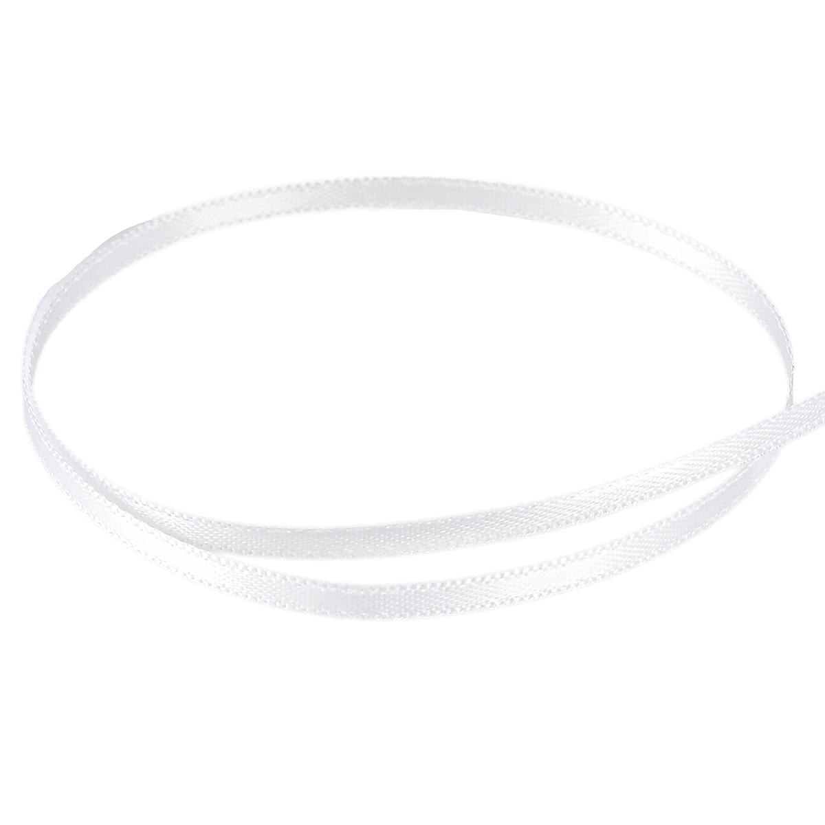Dekoratyvinė atlasinė juostelė, balta dviguba atlasinė juostelė, 3 mm, 50 m