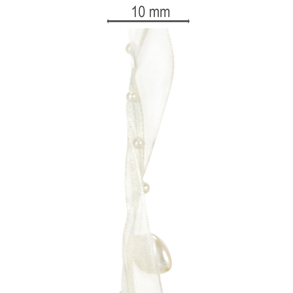 Dekoratyvinė juostelė, kreminė, širdelės, perlai, vestuvių dekoracija, 10 mm, 5 m