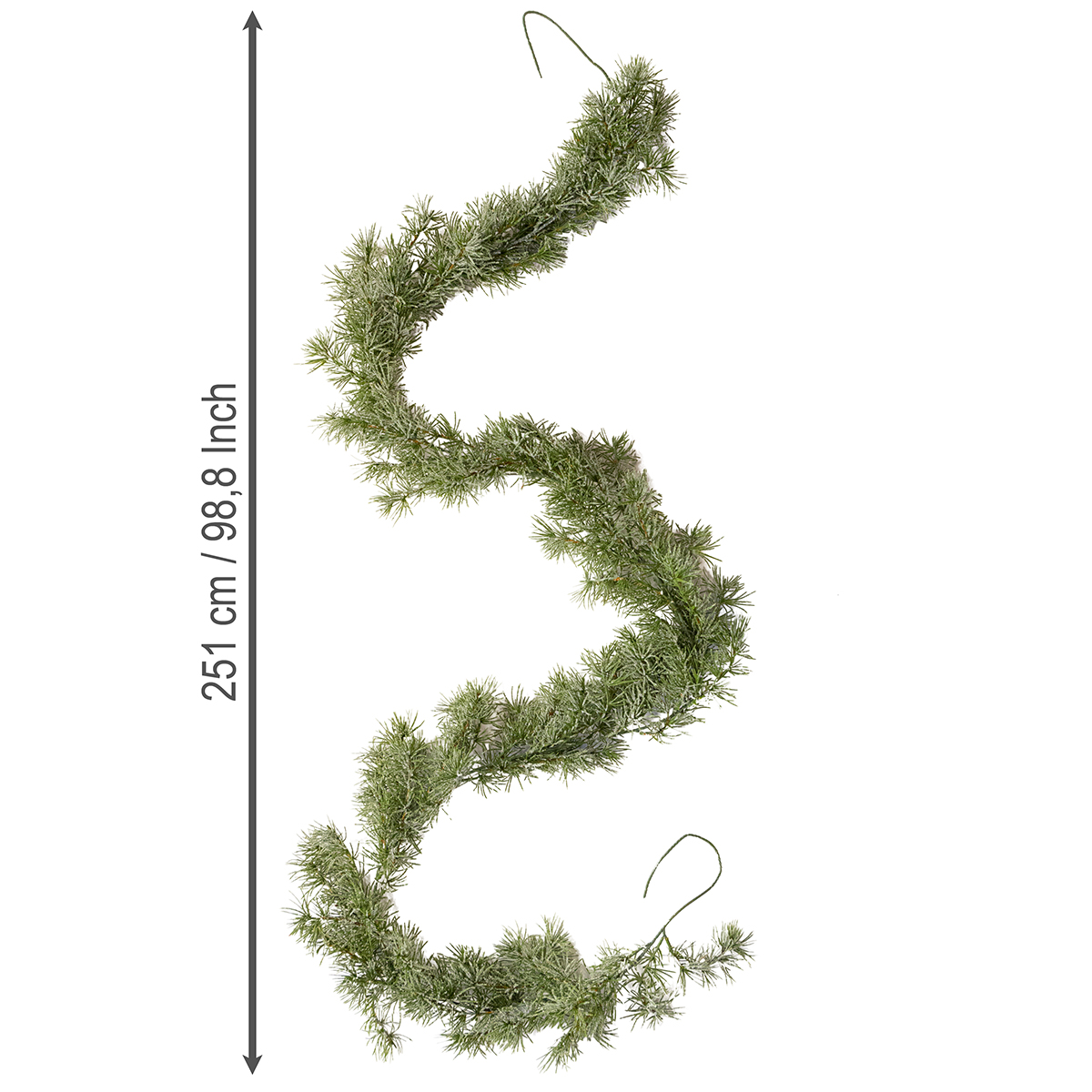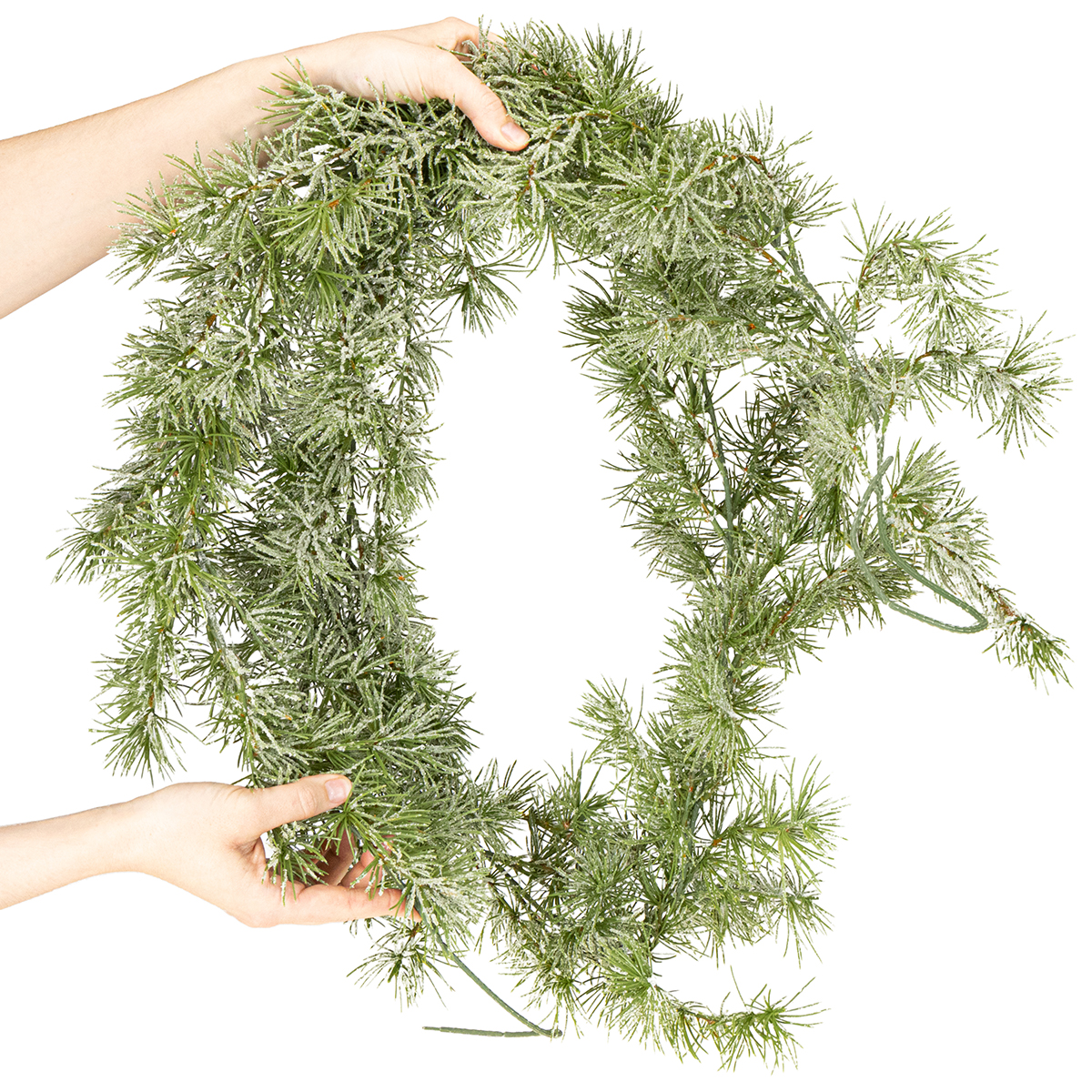 Ši dekoratyvinė girlianda žavi savo tikrovišku dizainu: subtilūs, sodriai žali, imitaciniai maumedžio spygliai, kurių matinė išvaizda suteikia jai šiek tiek šalčio žavesio. Nesvarbu, ar dekoratyviai pakabinta virš lango rėmo, ar naudojama laiptų turėklams paversti tikru akių traukos centru, ši girlianda puikiai atrodo bet kur. Dėl tvirtos plastikinės medžiagos ją galite naudoti daugelį metų neprarandant kokybės ar spalvos intensyvumo. Spygliai nenukrenta, neišdžiūsta – ši maumedžio girlianda išlieka kaip nauja. Ji ypač tinka tiems, kurie vertina ekologiškumą ir praktiškumą neaukodami natūralaus žavesio.