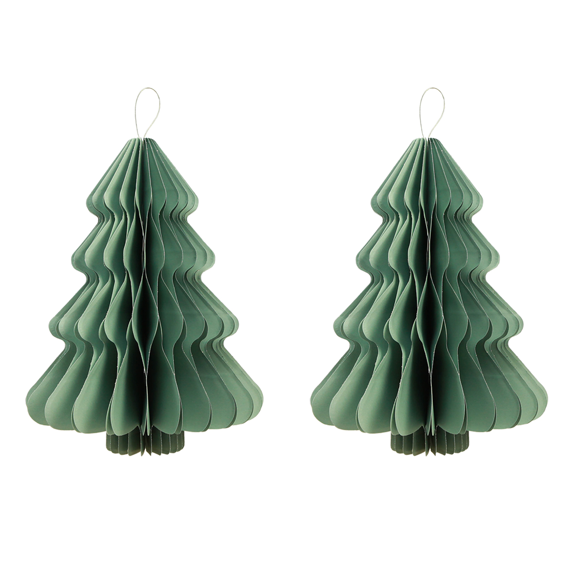 Dekoratyvinė pakabinama popierinė eglutė Kalėdų mėtinės spalvos sidabro spalvos, aukštis 40 cm, 2 vnt.