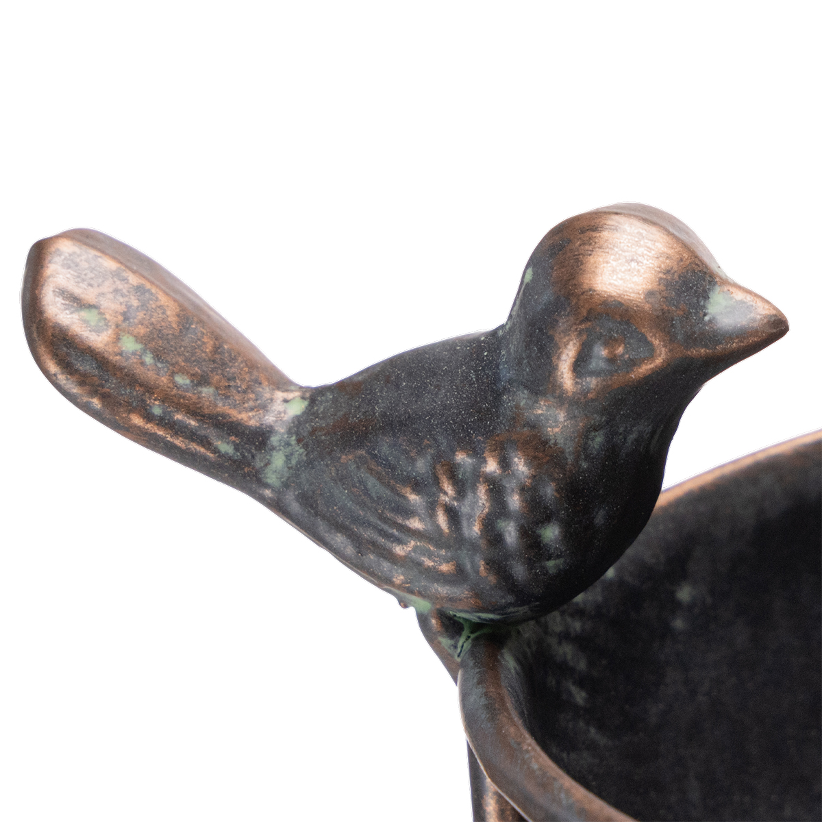 Įsivaizduokite, kaip ši žavinga paukščių girdykla suteiks jūsų sodui nostalgijos ir elegancijos. Stilingas subtilaus gėlių dubenėlio ir dekoratyvinės grotelės derinys paverčia šį metalinį meno kūrinį tikru akį traukiančiu objektu. Nudažyta rafinuotu bronzos atspalviu, ši dekoratyvinė paukščių girdykla puikiai dera prie bet kokio sodo ar balkono dekoro ir kviečia jus pasilikti. Nesvarbu, ar tai linksmi giesmininkai jūsų terasoje, ar patrauklus vazonas jūsų prieškambaryje, šis sodo aksesuaras yra universalus ir žavi savo nesenstančia estetika. Pagamintas iš tvirto metalo, jis idealiai tinka uždaroms lauko erdvėms, užtikrindamas, kad galėsite mėgautis jo žavesiu ilgus metus.