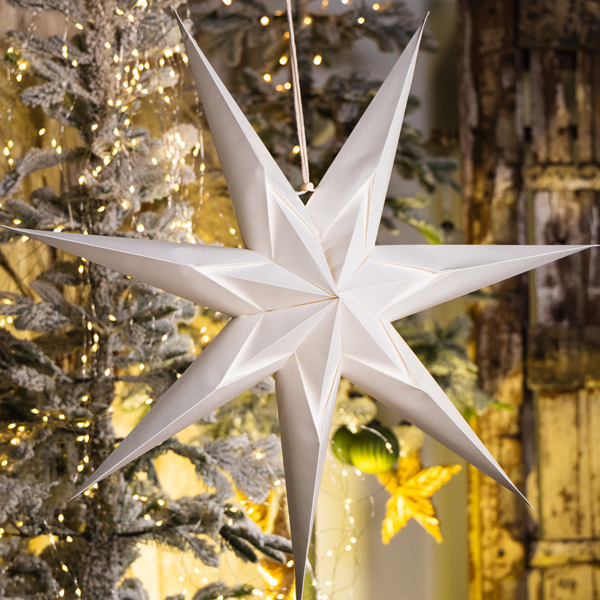 - Pakabinkite popierinę žvaigždę lange, kad sukurtumėte svetingą efektą.