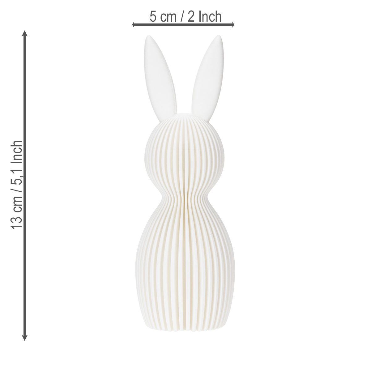 Patirkite elegantišką dizainą pačiame aukščiausiame lygyje! Ši dekoratyvinė triušio figūrėlė, pasižyminti modernia, sulankstyta išvaizda, yra tikras akcentas šiuolaikinio ir minimalistinio interjero mėgėjams. Šis patogų 13 cm aukščio ir 5 cm skersmens triušis lengvai integruojasi į bet kokią aplinką ir nebūna įkyrus. Balta spalva puikiai dera su įvairiais interjero stiliais – nuo skandinaviško ir minimalistinio iki urbanistinio-modernaus. Tiesiog padėkite jį ant lentynos ar stalo, ir triušis suteiks jūsų kambariams stilingą akcentą.