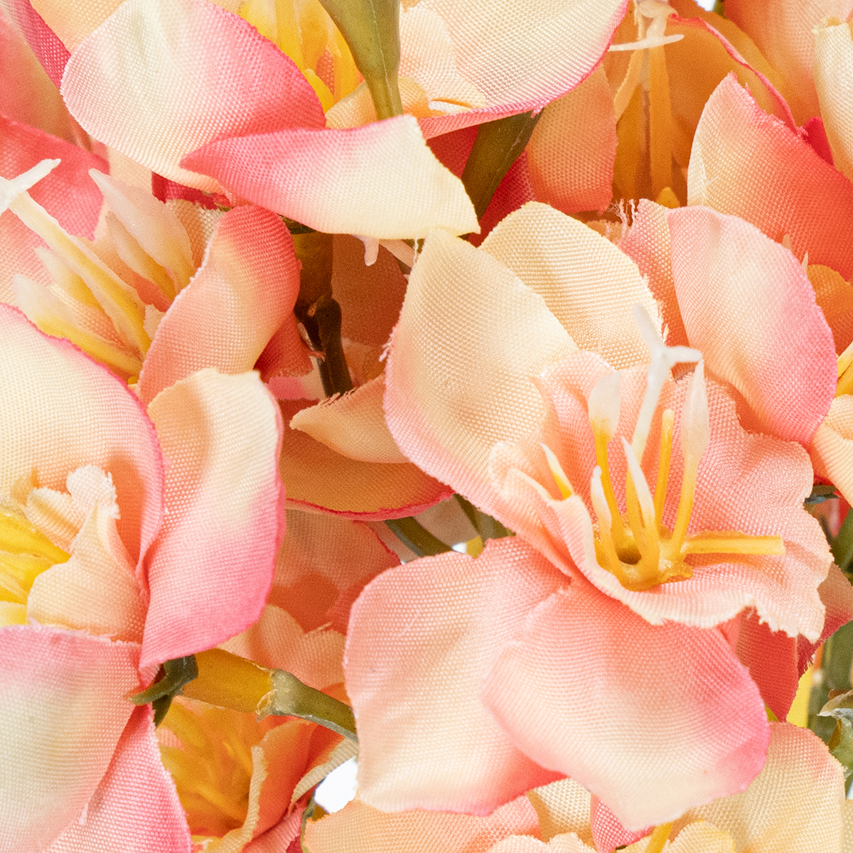 Alstroemerija, dar žinoma kaip Peru lelija, gėlių kalba simbolizuoja draugystę, atsidavimą ir stiprybę. Jos šilti rausvi atspalviai perteikia meilę, dėkingumą ir meilę – idealiai tinka visiems, norintiems per savo dekoracijas perteikti nuoširdžias žinutes. Ši gėlė ne tik floristikoje, bet ir kaip dirbtinė dekoratyvinė gėlė suteikia prasmės jūsų gyvenamosioms erdvėms ir ypatingoms progoms.