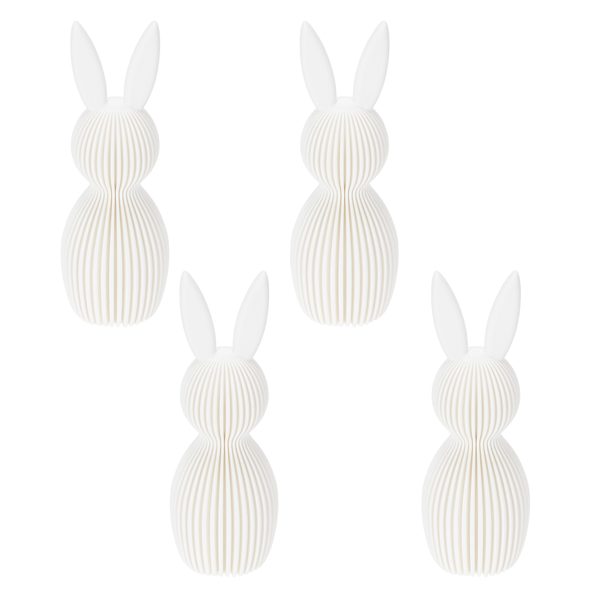 Ieškote stilingų ir modernių velykinių dekoracijų? Šios spindinčios baltos zuikučių figūrėlės pavers jūsų namus tikra pavasario oaze. Dėl minimalistinio dizaino ir tobulo 11 centimetrų dydžio jos yra neįtikėtinai universalios – žavios, santūrios ir lengvai naudojamos. Nesvarbu, ar jos bus ant palangės, ar židinio atbrailos, ar kaip elegantiškas akcentas svetainėje, šios žavingos dekoratyvinės zuikutės garantuotai pritrauks kiekvieno akį. Keturios figūrėlės vienoje pakuotėje suteikia daugybę galimybių jas išdėstyti taip, kaip norite. Ar jau jaučiate šventinę dvasią?