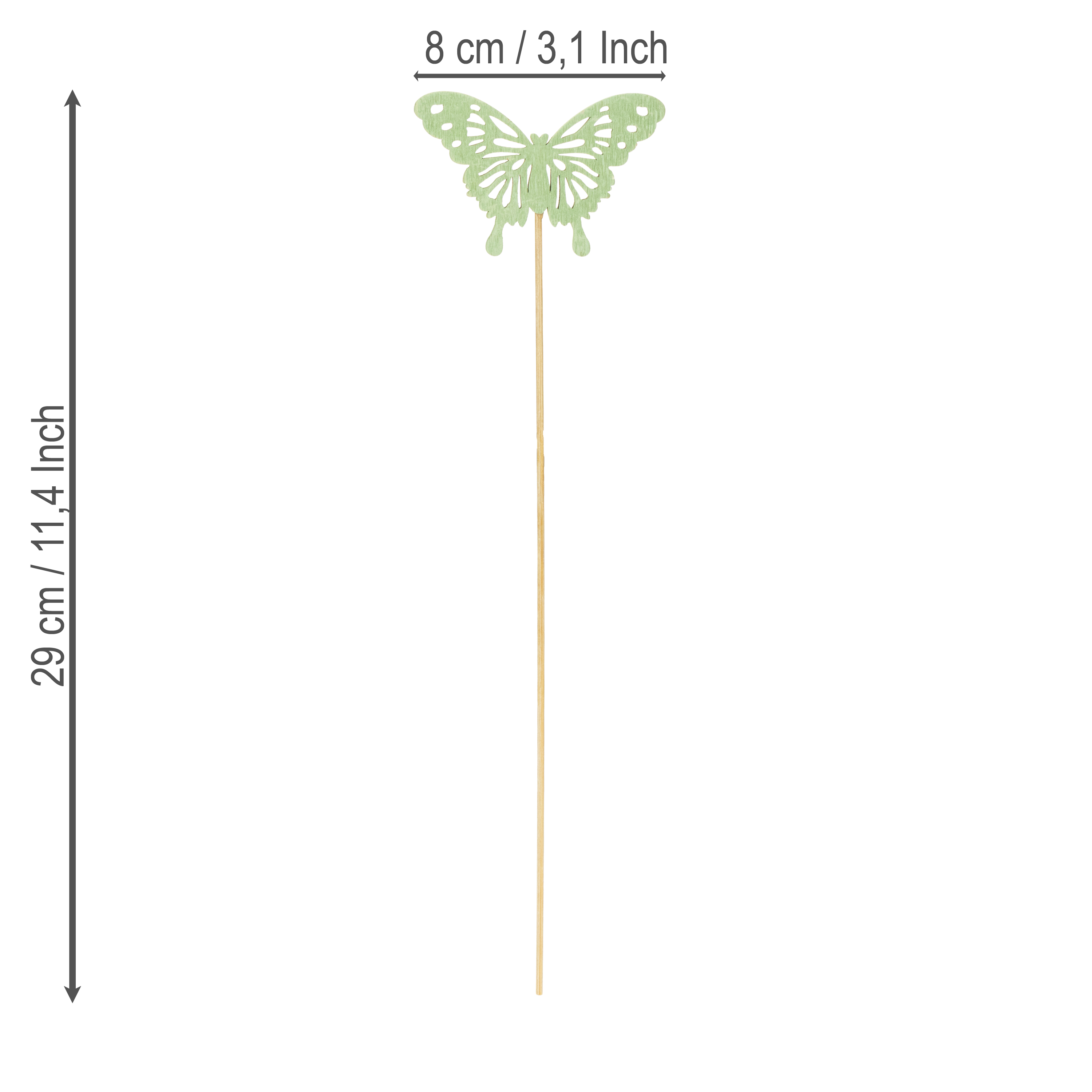 - Drugelio dydis: 8 cm, lazdelės ilgis: 29 cm