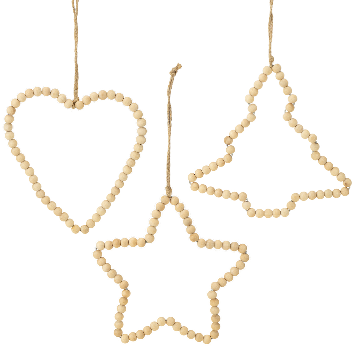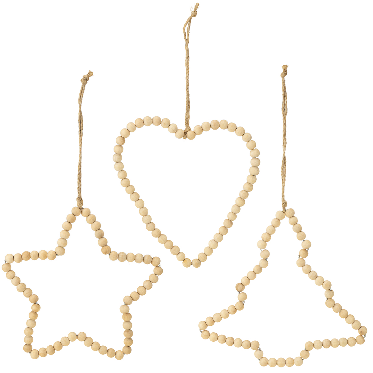 Produkto pavadinimas: Dekoratyviniai kalėdiniai mediniai karoliukai širdies žvaigždės eglutė H16cm 3 vnt