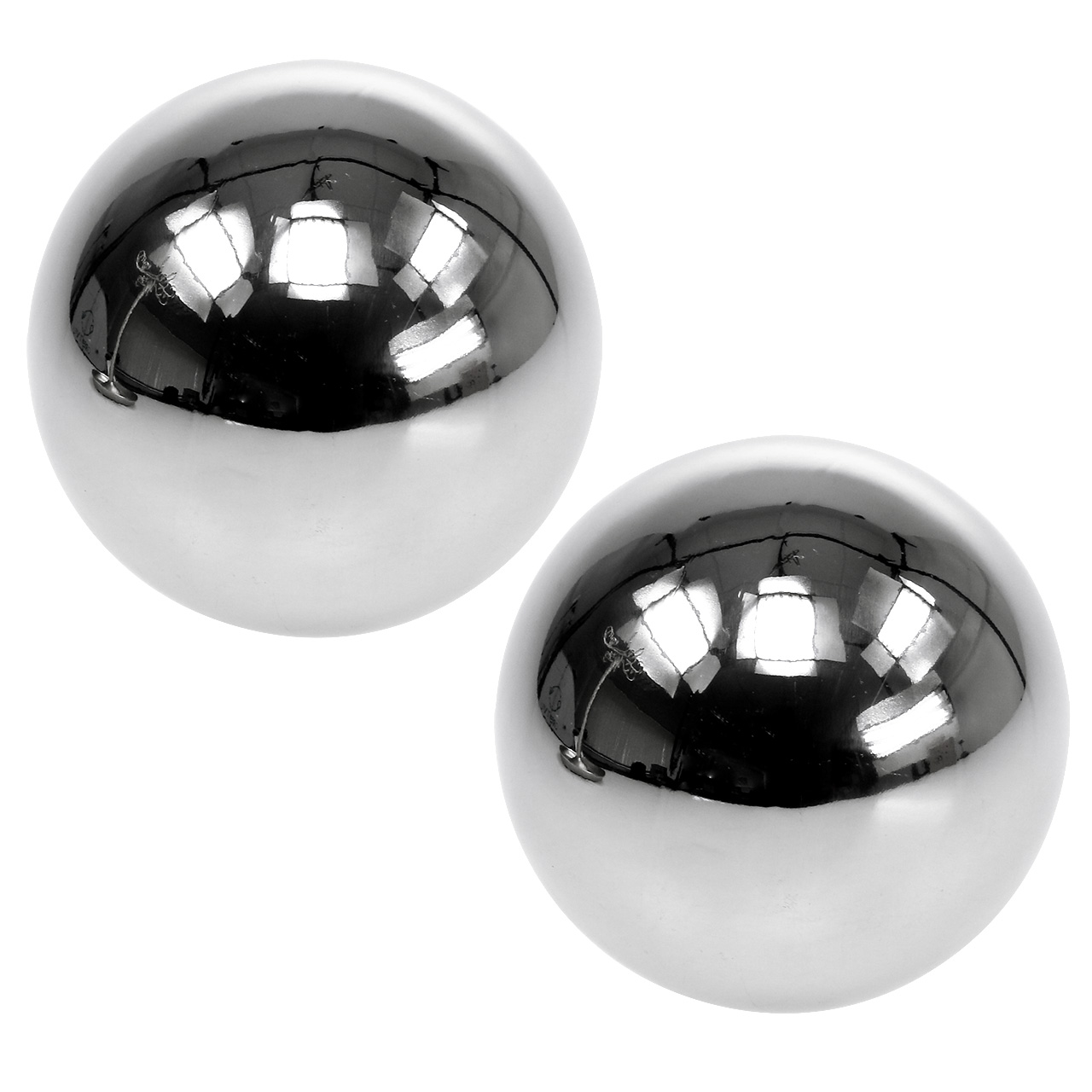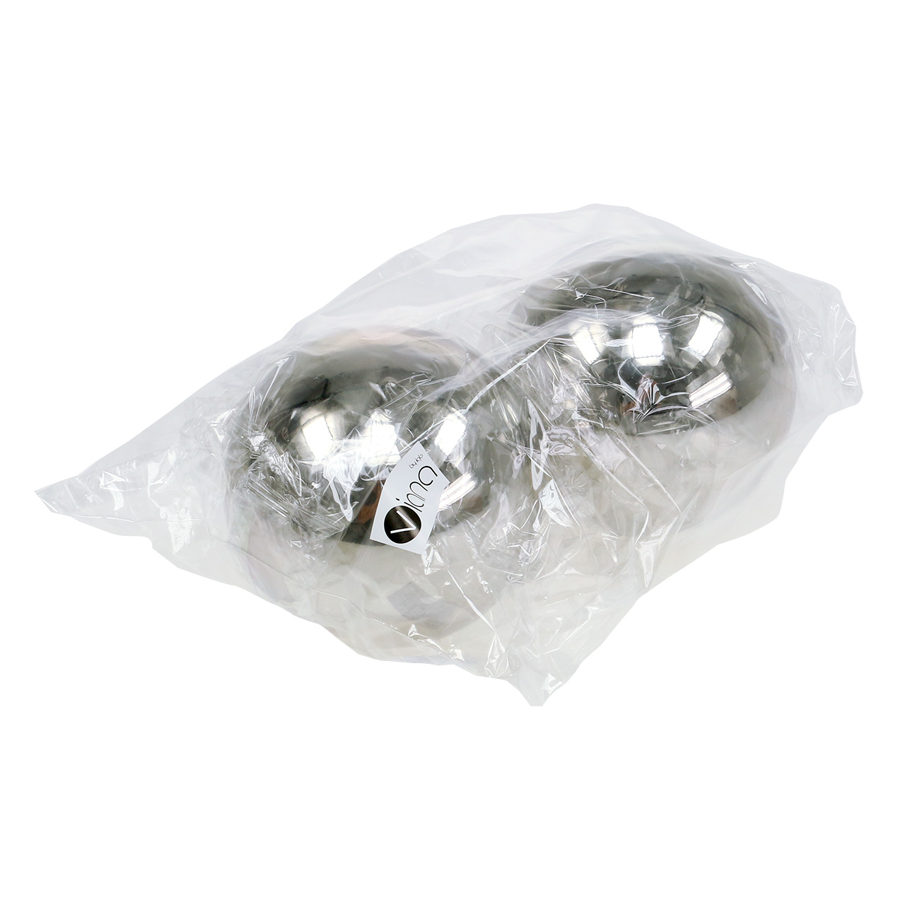 Abu nerūdijančio plieno dekoratyviniai rutuliai yra maždaug 11 centimetrų skersmens. Dekoratyvinį kamuoliukų rinkinį gausite skaidrioje plastikinėje pakuotėje.