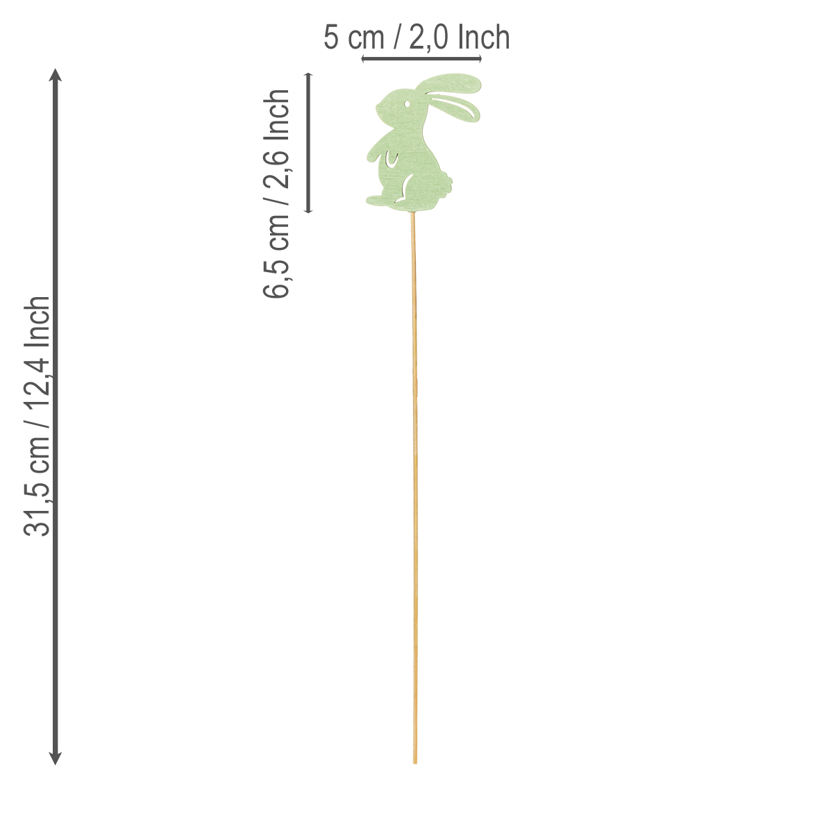 Dekoratyviniai triušiai ant pagaliuko kaip grafiniai akcentai stalams ir vazonams, 31,5 cm, 16 vnt.
