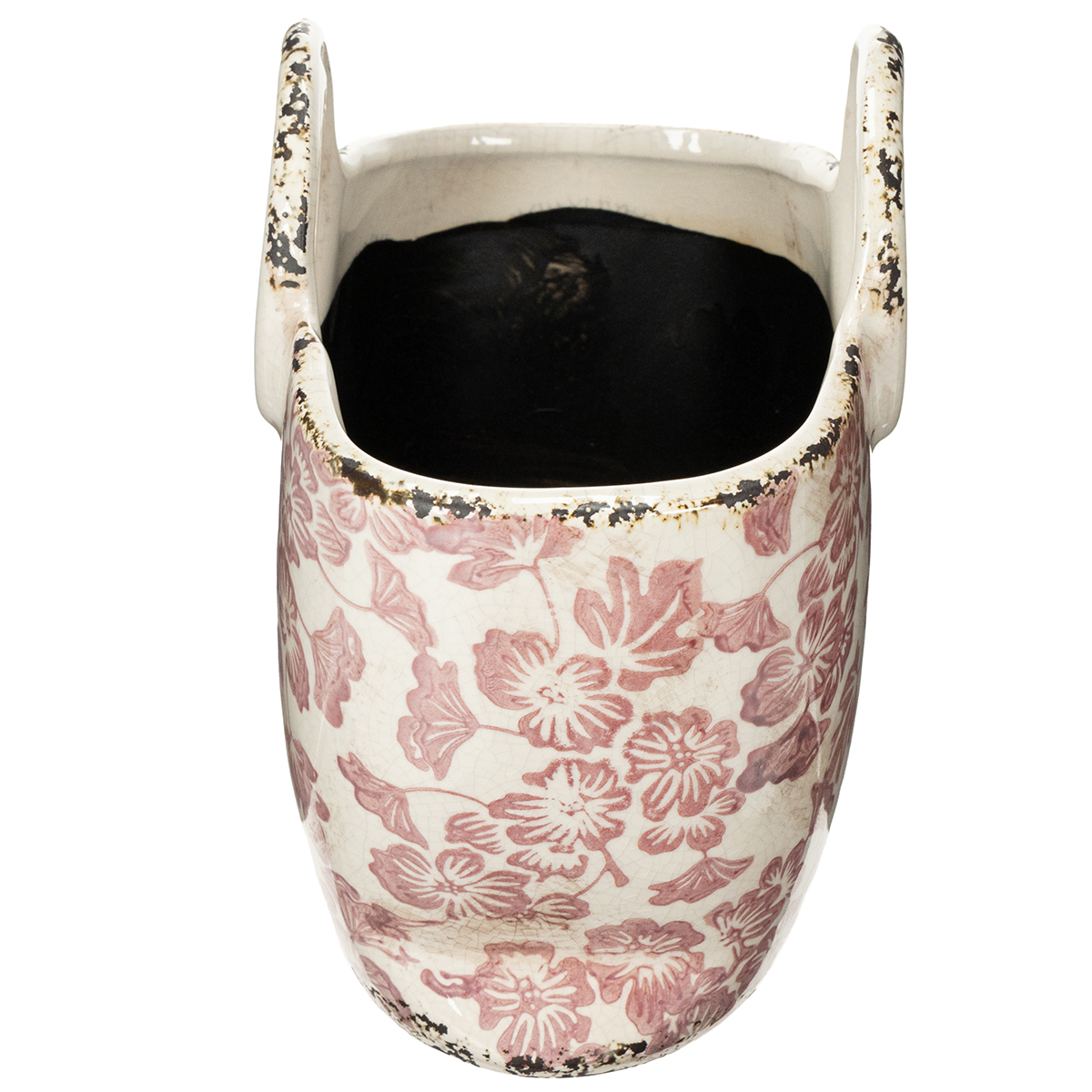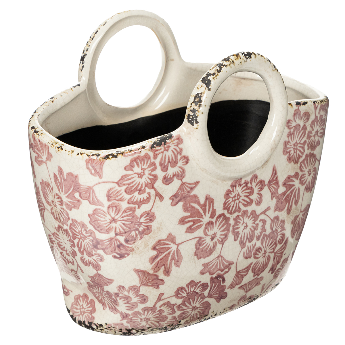 Vintažinis augalų vazonas su gėlių rašto rankena