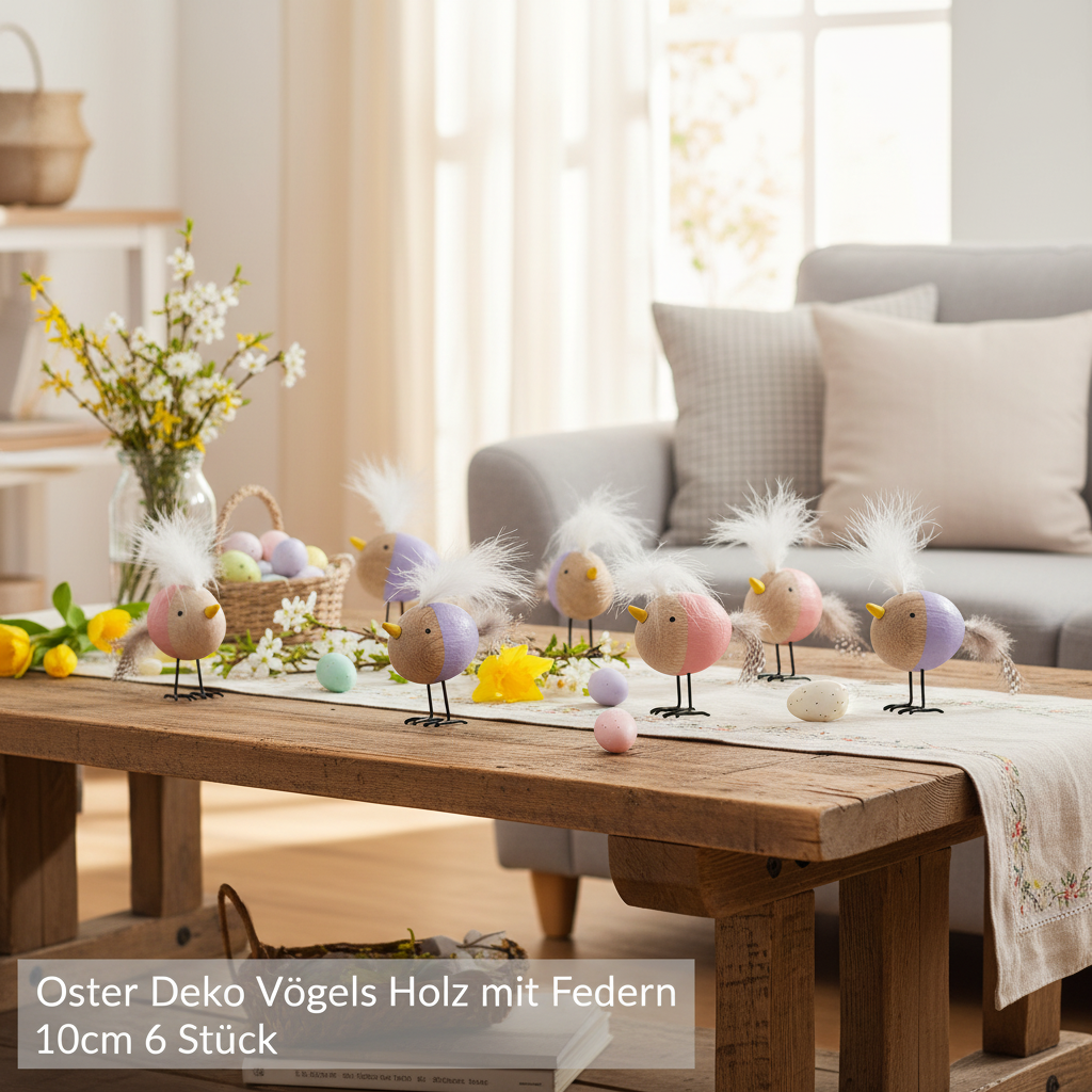Natūralios medienos, kruopštaus meistriškumo ir ryškių spalvų derinys daro šį dekoratyvinį rinkinį išties ypatingu. Šiuos mažus paukštelius ne tik lengva pastatyti, bet ir jie neįtikėtinai universalūs. Supakuoti į šešių vienetų rinkinį, jie idealiai tinka įgyvendinti jūsų dekoravimo idėjas. Atraskite daugybę galimybių: spalvingas akcentas ant jūsų Velykų stalo, puikus pavasarinių dekoracijų papildymas arba apgalvota dovana jūsų artimiesiems.
