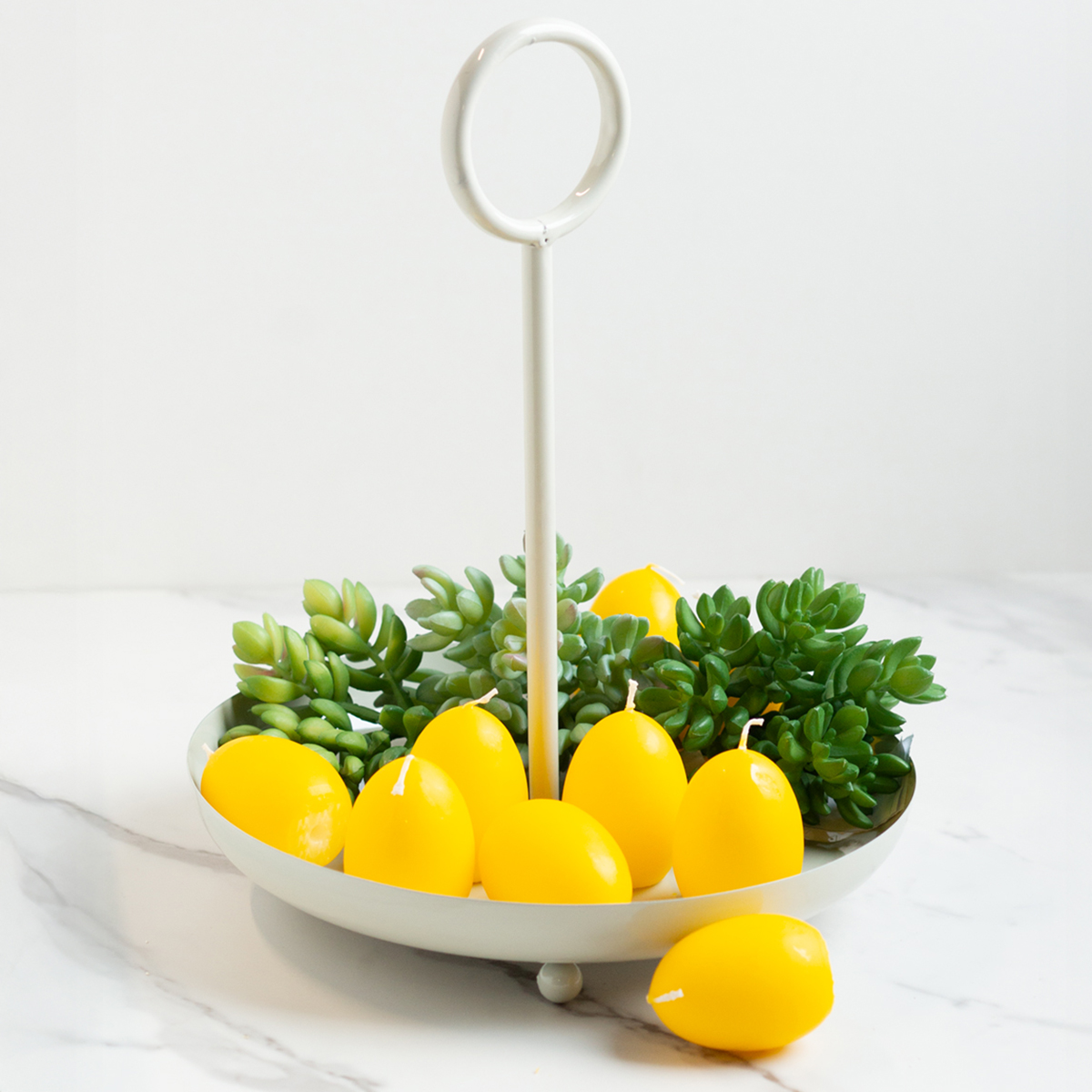 Šis metalinis dekoratyvinis dubuo yra daug daugiau nei tik daiktadėžė. Jo 25 cm skersmuo ir 31 cm aukštis suteikia daug vietos dekoratyviniams akcentams, tačiau jis išlieka pakankamai kompaktiškas, kad tilptų ant bet kokio stalo ar indaujos. Nesvarbu, ar naudojamas kaip stilingas namų dekoras, ar praktiškas kasdienis daiktas, šis dubuo yra neįtikėtinai universalus. Baltas metalinis paviršius spinduliuoja modernia elegancija ir dera prie įvairių stilių – nuo skandinaviško ir minimalistinio iki šiuolaikinio. Naudokite jį sukulentams, elegantiškoms žvakėms ar net stilingai eksponuoti dirbtinius vaisius. Tikras universalumo šedevras!