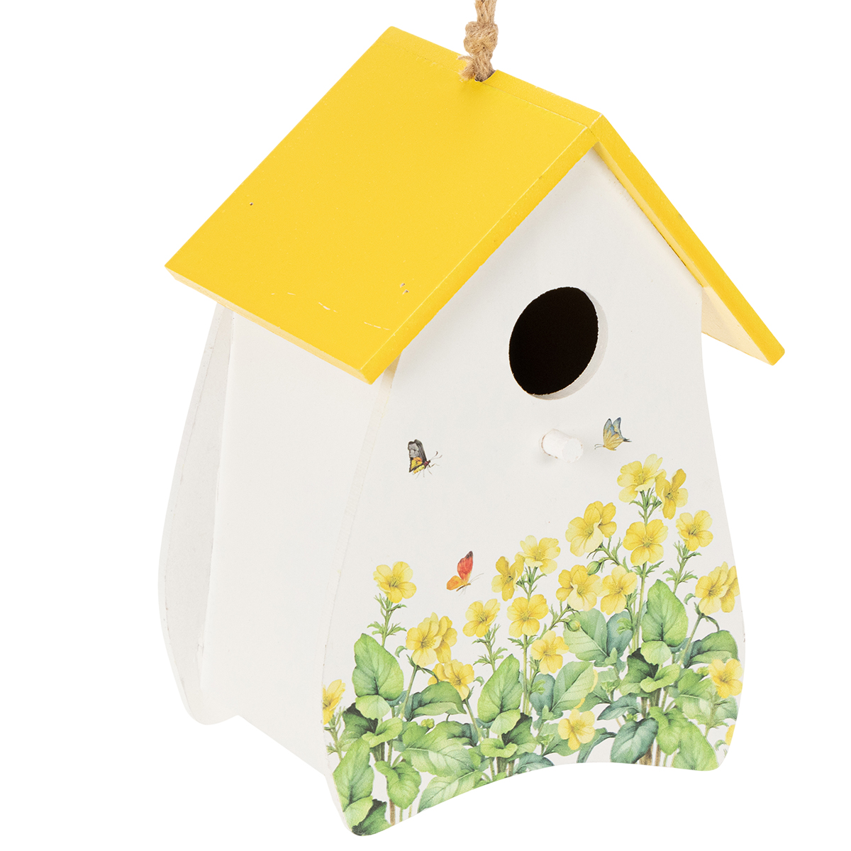 Kas įneša gaivos į jūsų interjero dizainą ir suteikia jūsų namams tą ypatingą savitumą? Būtent, dekoratyvinis elementas, kuris patraukia akį! Šis spindinčios baltos spalvos paukščių namelis su geltonu stogu ir subtiliais gėlių motyvais akimirksniu įneš žvalumo ir pavasario dvelksmo į jūsų namus. Puikiai tinka palangėms, svetainėms ar balkonams. Jis ne tik žavus, bet ir nuostabiai universalus, suteiksiantis jaukumo jūsų gyvenamajai erdvei. Tvirtas virvelė leidžia jį lengvai pakabinti, o mėgstantys atnaujinti interjerą įvertins praktišką angą gale. Įsigykite šį mažą brangakmenį ir leiskite jam tapti jūsų interjero akcentu!