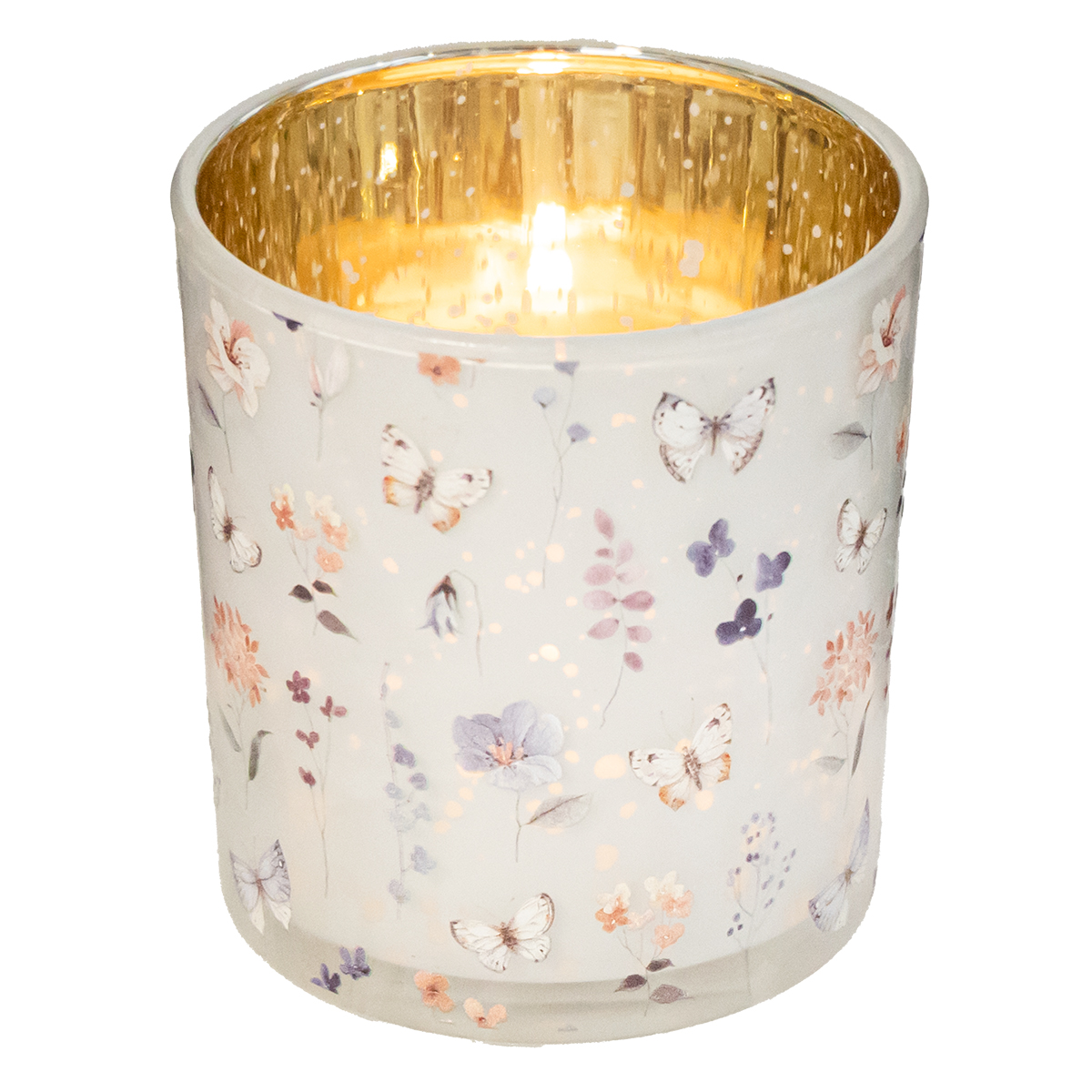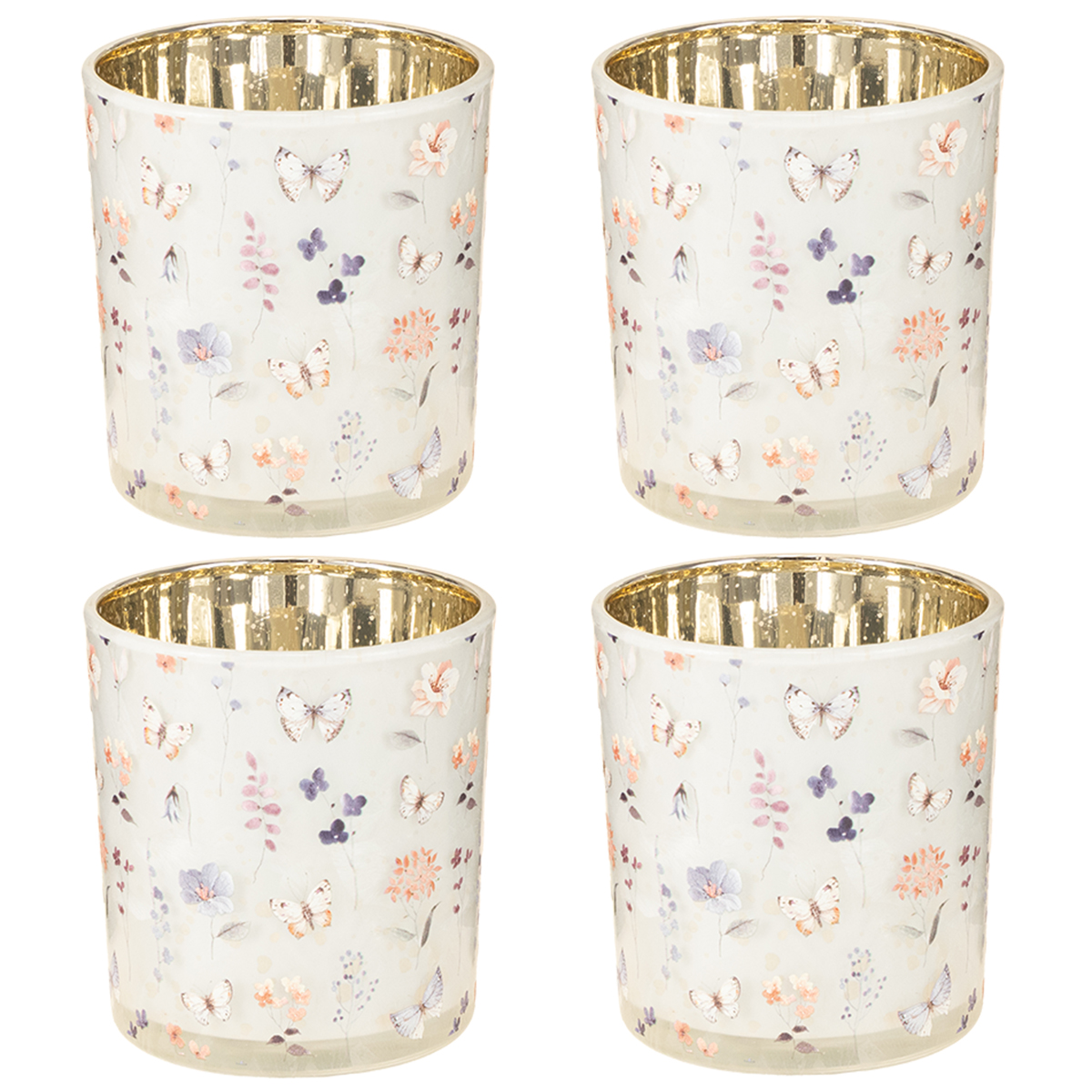 Floristik24 Dekoratyvinis stiklinis žibintas su drugelio raštu stilingam namų akcentui, 8 cm, 4 dalys