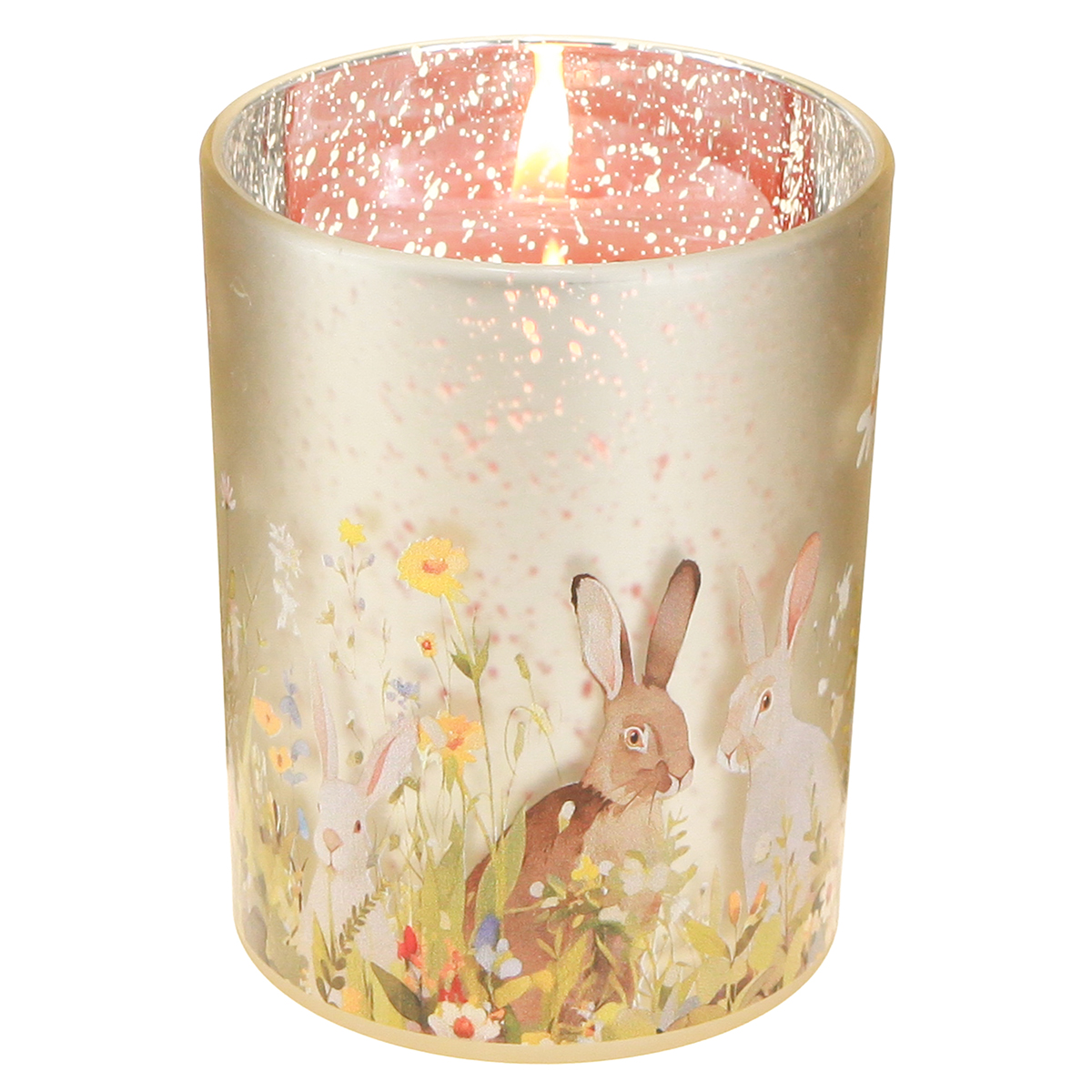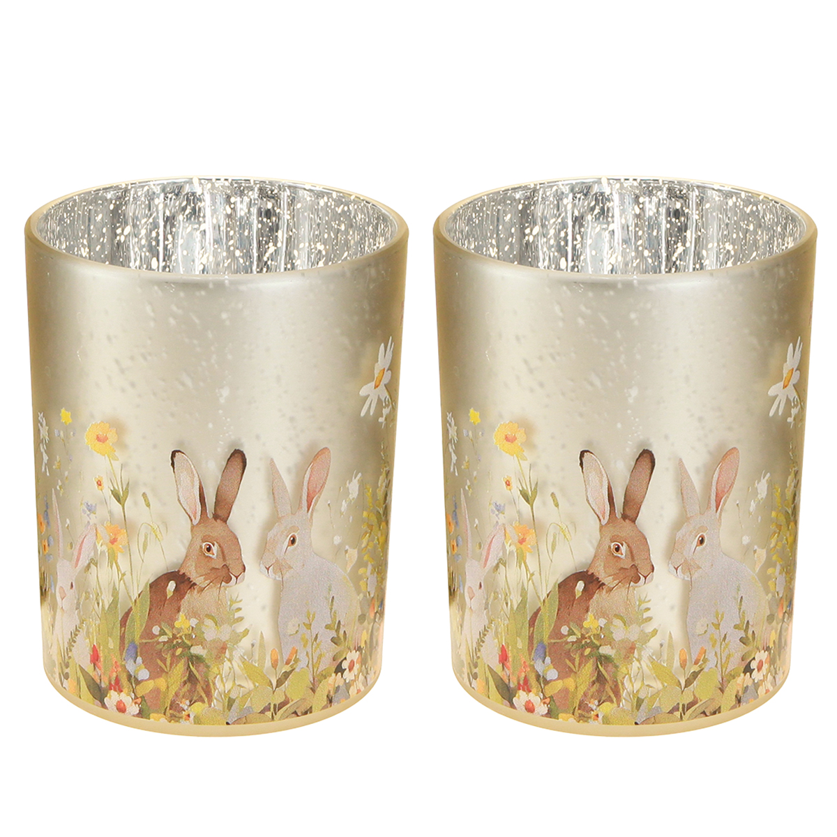 Dekoratyvinis stiklinis žibintas su Velykų zuikučio motyvu pavasariškiems namų akcentams, 12,5 cm, 2 vnt.