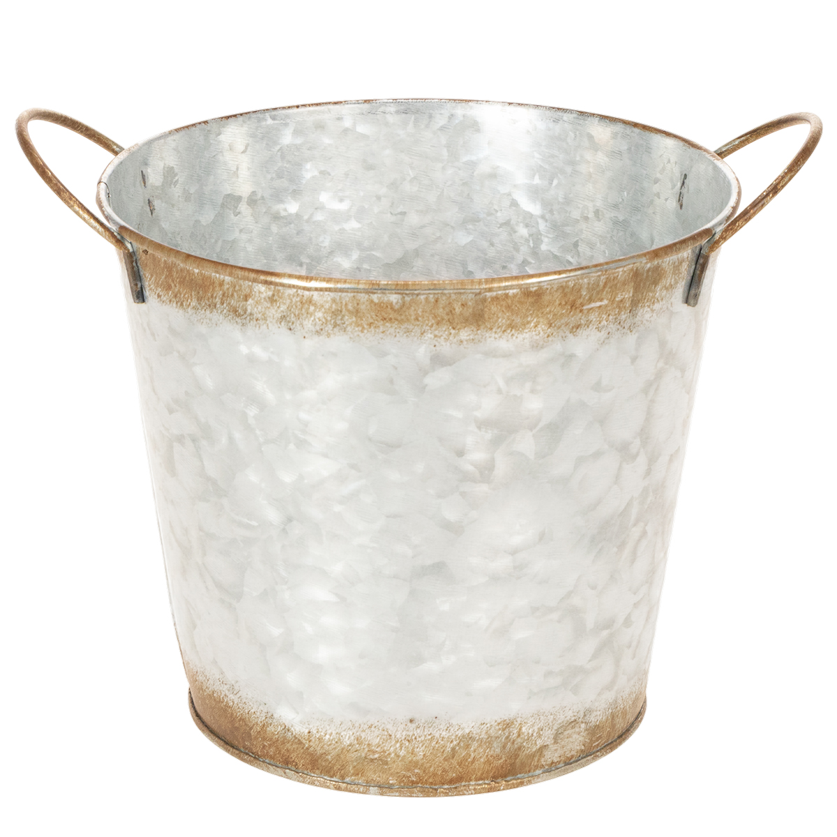 Dekoratyvinis vazonas su rankenomis yra universalus augalų kibiras: sidabro spalvos su patinos atspalviu, mažas metalinis indelis yra patraukli, ypatingos rūšies sodo puošmena, kuri puikiai išpjauna ir namuose kaip sodinukas!