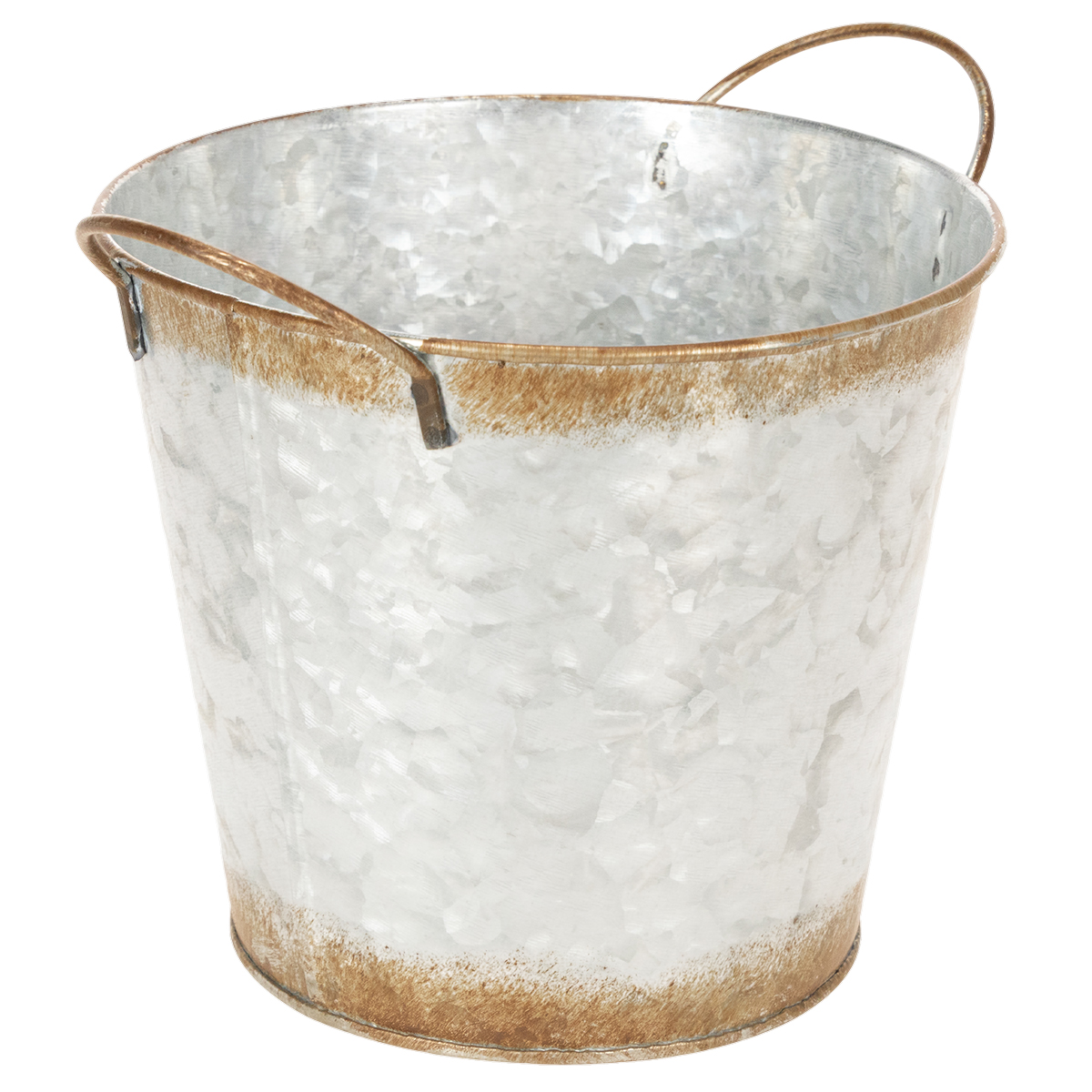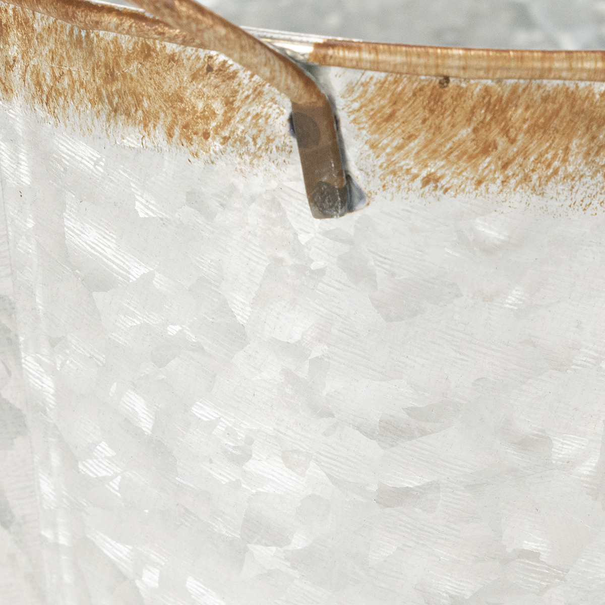 Dekoratyvinis vazonas su rankenomis, sodinimo kibiras, metalinis indas, sidabro spalvos, sendinto plieno, Ø17cm, aukštis 16,5cm