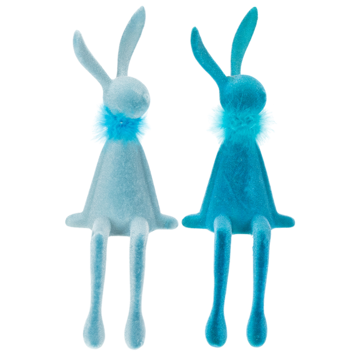 Sukurkite linksmą Velykų atmosferą savo namuose su šiais žavingais ant lentynos derančiais zuikučiais! Šios žavingos dekoratyvinės figūrėlės šviesiai ir tamsiai mėlynos spalvos puikiai pavers palangę ar stalą žavingu akcentu. Ilgos kojos ir linksmos spalvos puikiai dera prie bet kokio pavasario dekoro ir tikrai privers nusišypsoti tiek vaikus, tiek suaugusiuosius.