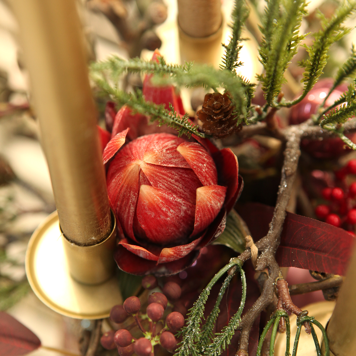 Mūsų dirbtinės raudonai oranžinės proteos – išskirtinė puošmena visiems, norintiems savo namams ar renginiui suteikti egzotiškumo. Maždaug 34 cm ilgio trys dideli raudonai oranžiniai žiedai yra tiksliai atkartoti ir papildyti žaliais lapais bei subtiliais baltais akcentais. Dėl lanksčių stiebų su vieliniais šerdimis šias Protea cynaroides (karališkas proteas) galima stabiliai išdėstyti vazose arba įkomponuoti į įmantrius vainikus ar kompozicijas. Šių dirbtinių gėlių raudona spalva spinduliuoja gyvybingumą ir tobulą pusiausvyrą tarp stiprybės ir elegancijos. Nesvarbu, ar tai būtų žavinga svetainės puošmena, ar prabangi stalo dekoracija šventėms, šios raudonos dirbtinės gėlės tikrai patrauks akį.