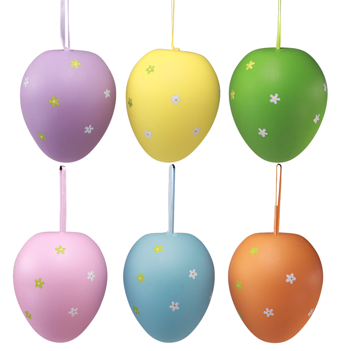 Didelius 6 skirtingų spalvų velykinius kiaušinius gausite su atitinkama juostele kaip pakabą.