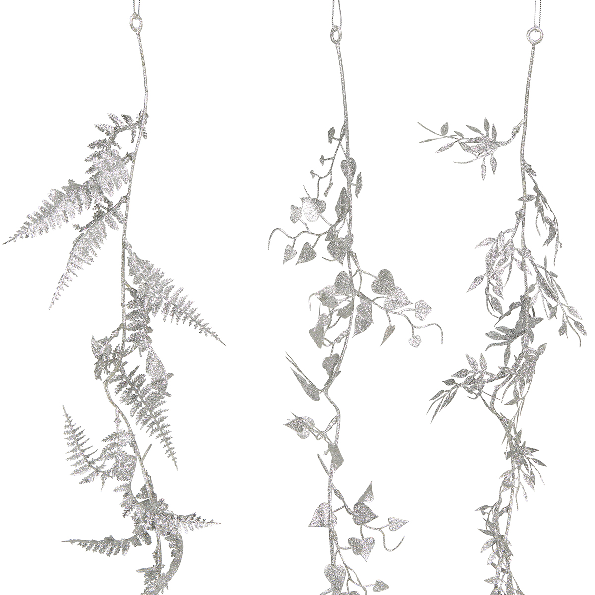 Produkto pavadinimas: Dirbtinė girlianda sidabro blizgučiai paparčio lapų girlianda 180cm 3 vnt