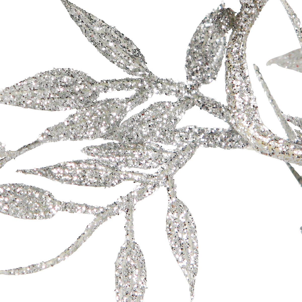 Dėmesys detalėms atsispindi dailiai apdirbtuose lapuose, kurie dekoruoti sidabro blizgučiais. Akį traukianti priemonė, kurios negalima nepastebėti renginiuose ir vakarėliuose, kaip vitrinos puošmena ar vestuvių puošmena. Uždėkite mūsų blizgančią pakabinamą dekoraciją ant durų staktos, stilingai suprojektuokite lango rėmą arba papuoškite sieną elegantiškais akcentais.