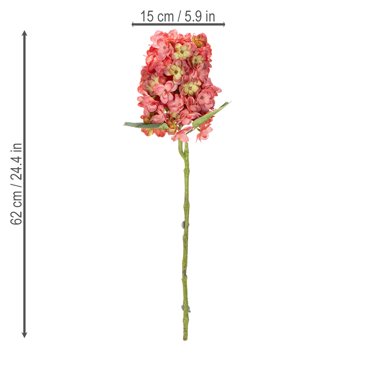 Ieškote stilingo būdo papuošti savo namus be rūpesčių dėl priežiūros ir dirbtinių gėlių trumpalaikiškumo? Mūsų dirbtinė hortenzija populiarios rožinės spalvos yra puikus jūsų interjero dizaino papildymas. Dėl elegantiškos, tikroviškos išvaizdos ši dirbtinė šluotinė hortenzija tikrai sužavės. Nesvarbu, ar tai būtų svetainėje, valgomajame, ar biure, ji harmoningai dera prie bet kokio interjero ir sukuria šiltą, jaukią atmosferą.