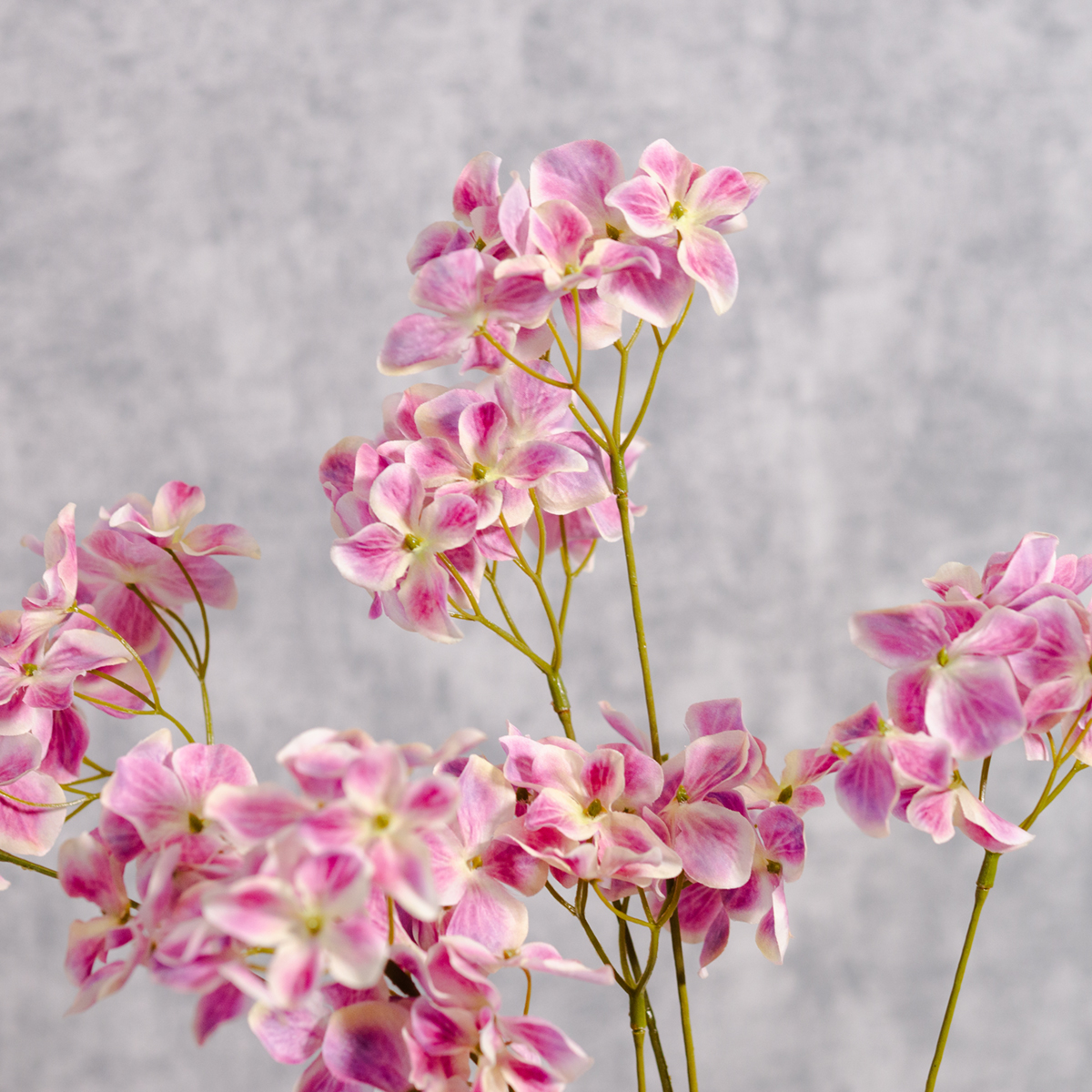 Ši dirbtinė hortenzija įspūdinga visais atžvilgiais – nuo apgaulingai tikroviškos išvaizdos iki aukštos kokybės konstrukcijos iš poliesterio ir plastiko. Kiekvienas žiedas atrodo toks tikroviškas, kad beveik galite užuosti tikrų gėlių kvapą. 110 cm ilgio ir maždaug 40 cm skersmens, ji elegantiškai dera prie bet kokio interjero, nebūdama įkyri. Šiltai rožinis atspalvis gražiai dera su romantiškais interjero stiliais, tokiais kaip vintažinis ar „shabby chic“, bet taip pat atrodo stulbinamai modernioje ar minimalistinėje aplinkoje. Ieškote įkvėpimo? Derinkite mūsų hortenzijas su baltomis orchidėjomis arba subtiliomis eukalipto šakelėmis, kad sukurtumėte svajingą stalo kompoziciją. Arba įdėkite šakeles atskirai į paprastas stiklines vazas, kad suteiktumėte elegancijos komodoms ir palangėms.