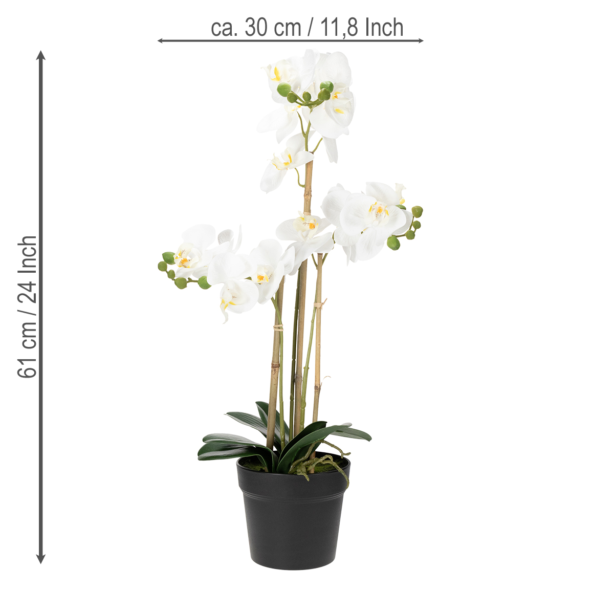 Produkto pavadinimas: Dirbtinė orchidėja vazone harmoningai aplinkai, balta, 60 cm