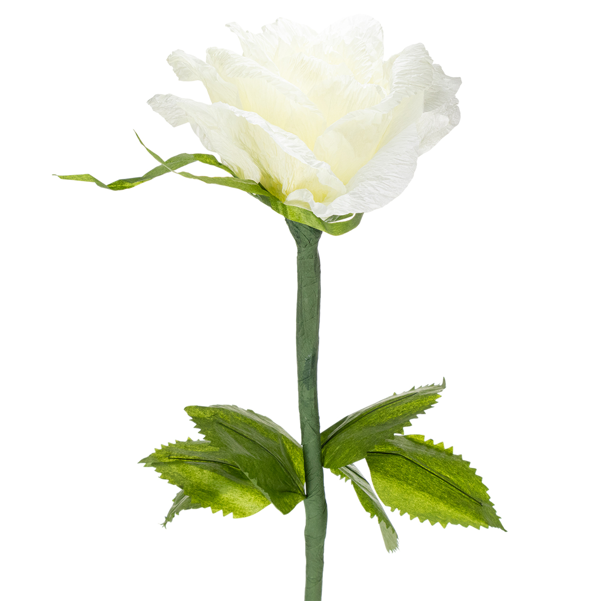 Mūsų dirbtinė balta rožė žavi savo įspūdingu dydžiu, kruopščiu meistriškumu ir universaliu pritaikymu. Dėl subtilaus elegancijos ji puikiai tinka įvairiems interjero dizaino stiliams – nuo klasikinio ir modernaus minimalizmo iki boho prašmatnumo. Natūrali popierinių žiedų išvaizda kartu su žaliu stiebu ir lapais sukuria nepaprastai tikrovišką vaizdą. Ši lengvai naudojama alternatyva patiks visiems, norintiems išvengti tikrų gėlių priežiūros rūpesčių.