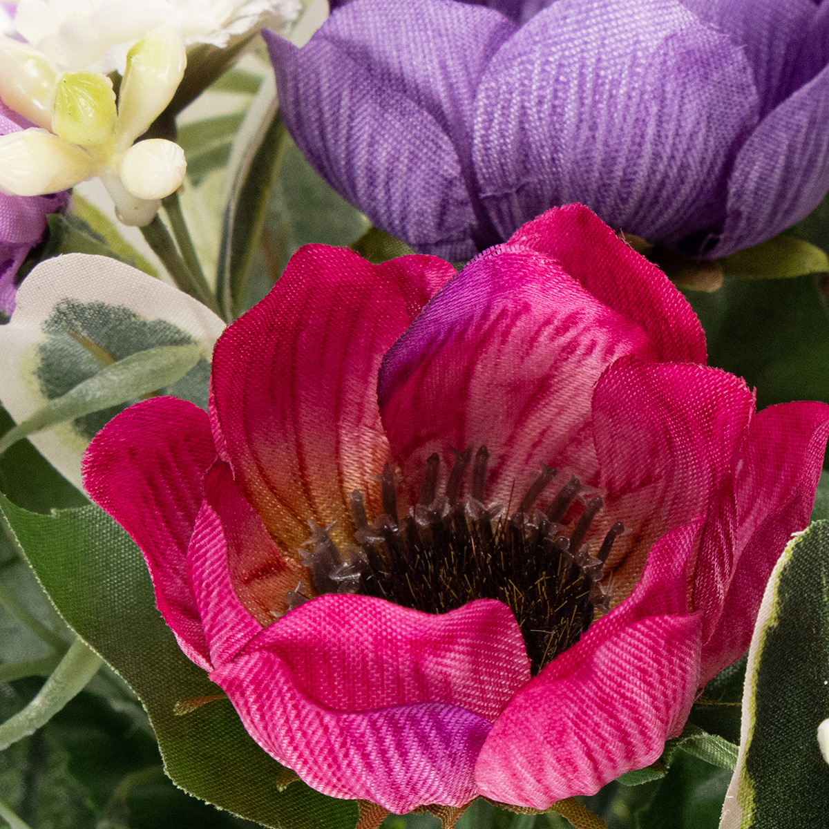 Jau tvyro pavasaris! Paverskite savo namus gerovės oaze ir įkvėpkite naujos gyvybės savo interjerui – visiškai nereikalaudami priežiūros. Dirbtinių anemonų puokštė tai palengvina. Ši spalvinga, neįtikėtinai tikroviškų anemonų, ramunių ir violetinių akcentų kompozicija suteikia gamtos dvelksmą namams. Ryškių spalvų ir subtilaus gėlių rašto derinys puikiai papildo modernų interjero stilių ir suteikia stilingą akcentą komodoms, stalams ar prieškambariams. Nesvarbu, ar ji naudojama kaip stilingas svetainės stalo papuošalas, ar linksmas pasisveikinimas ant biuro stalo, ši kompaktiška puokštė (20 cm pločio, 26 cm aukščio) garantuotai praskaidrins jūsų dieną. Skamba gerai? Tuomet skaitykite toliau ir sužinokite daugiau apie šį universalų akcentą!