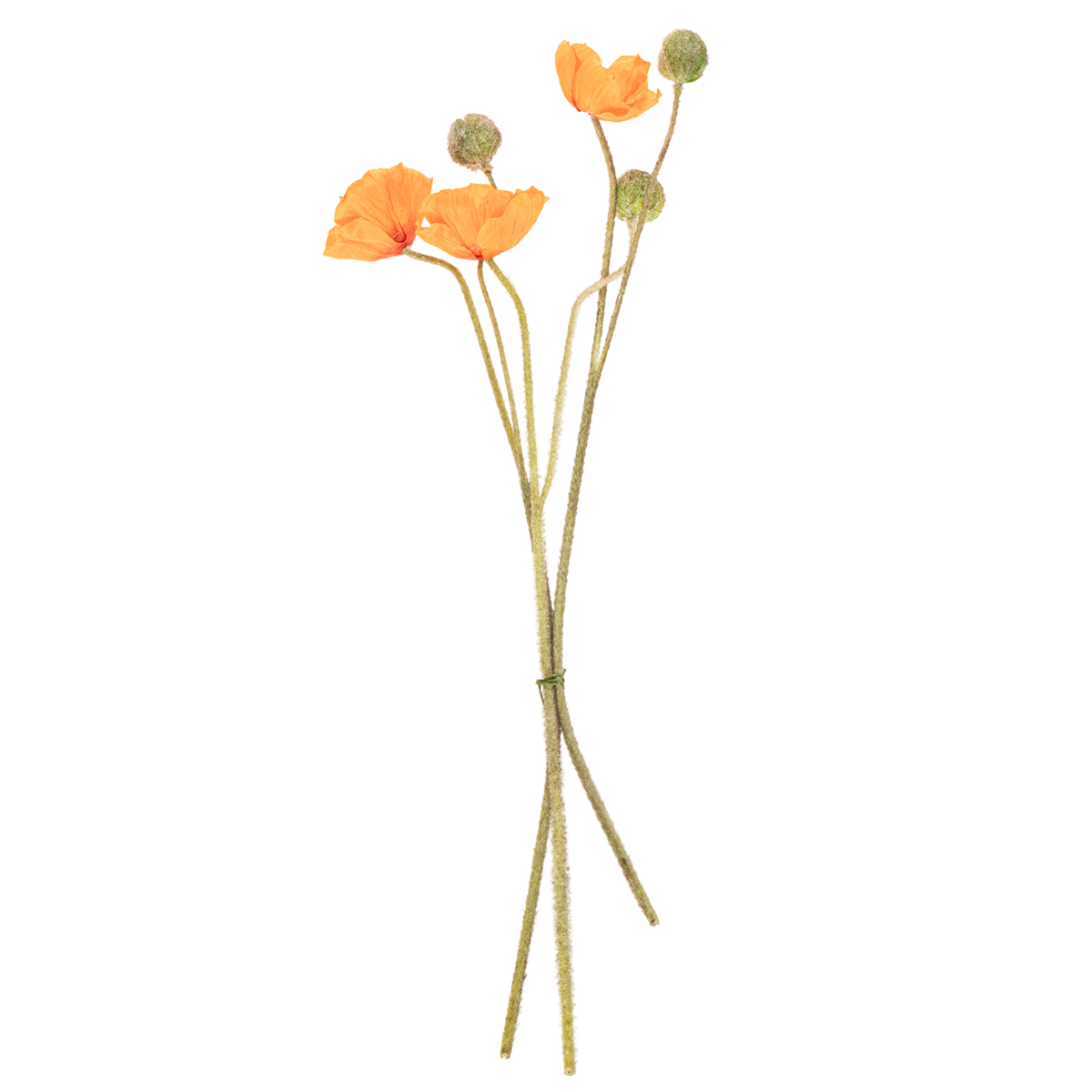 - Trys realistiškos aguonos šakelės, kiekviena su vienu žiedu ir vienu pumpuru