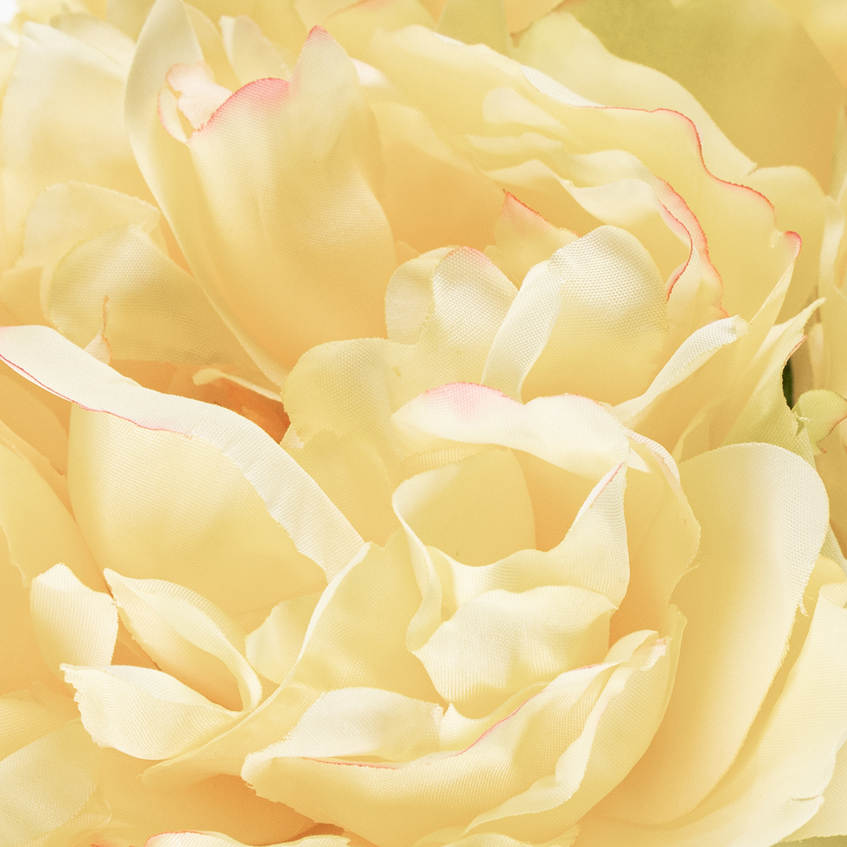Mūsų dirbtiniai bijūnai yra tikras bet kokio interjero dizaino stiliaus akcentas. Švelnus geltonas žiedų atspalvis sukuria draugišką ir svetingą atmosferą, todėl jie puikiai tinka moderniam, skandinaviškam ar net klasikiniam interjerui. Dėl aukštos kokybės šilko audinio gėlės atrodo neįtikėtinai tikroviškai. Idealiai tinka tiems, kurie mėgsta natūralias gėles, bet nori išvengti nuolatinio laistymo ir vytimo vargo. Šios gėlės yra ilgaamžės, lengvai prižiūrimos ir daugelį metų išlaiko savo pirminį grožį.