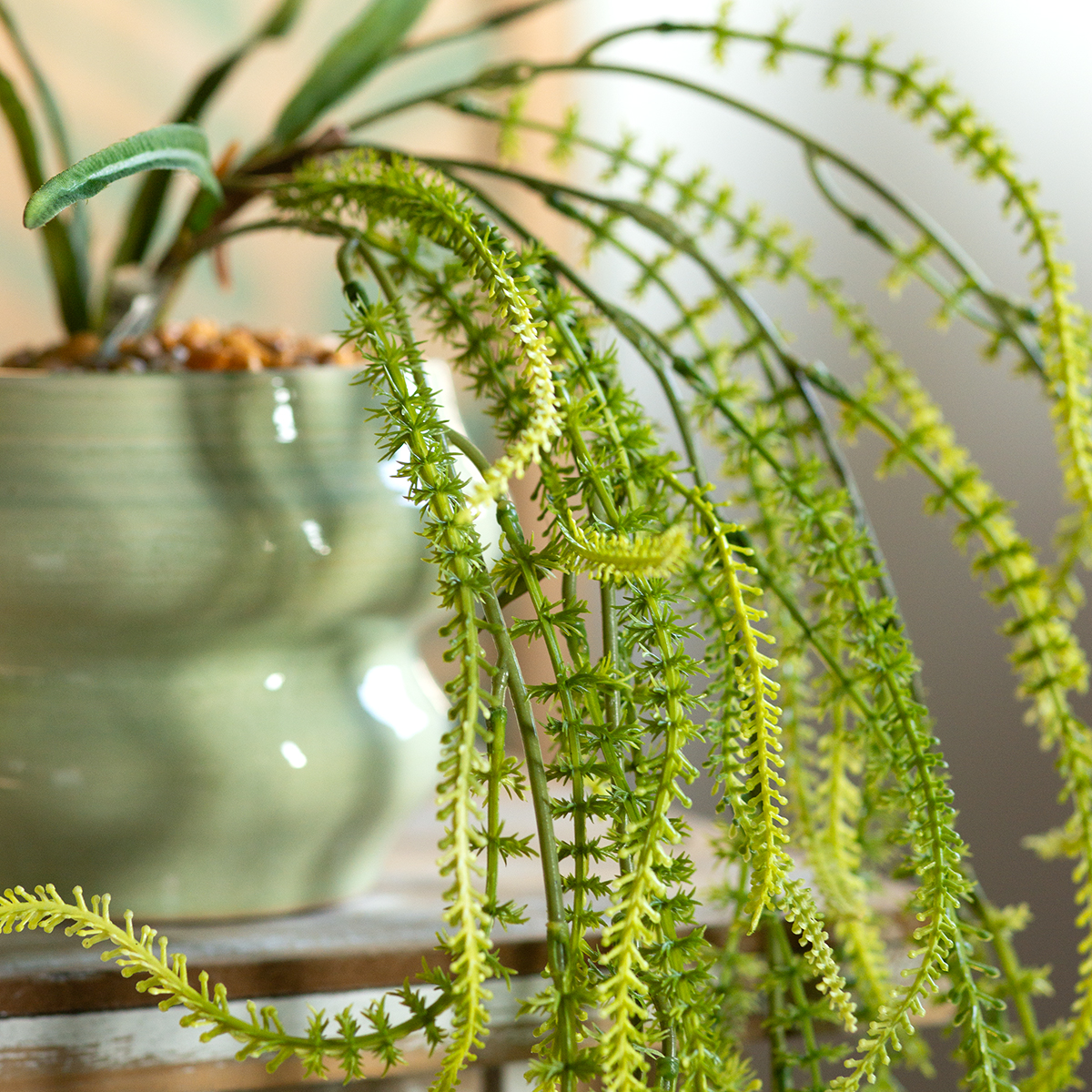 Nesvarbu, ar tai būtų svetainėje, terasoje, ar dideliuose renginiuose – jo universalumas jus pradžiugins. Mėgstantys madingą miesto džiunglių stilių gali gražiai derinti šį dirbtinį vijoklinį augalą su mediniais arba rotango baldais. Jis taip pat yra elegantiškas dekoratyvinis elementas kavinėse, parduotuvėse ar viešbučiuose, pridėdamas subtilių akcentų ir suteikdamas kiekvienam kambariui savitą įvaizdį. Dėl paprastos žalsvos spalvos lapės uodegos sorą galima derinti tiek su šviesiais, tiek su tamsiais tonais.