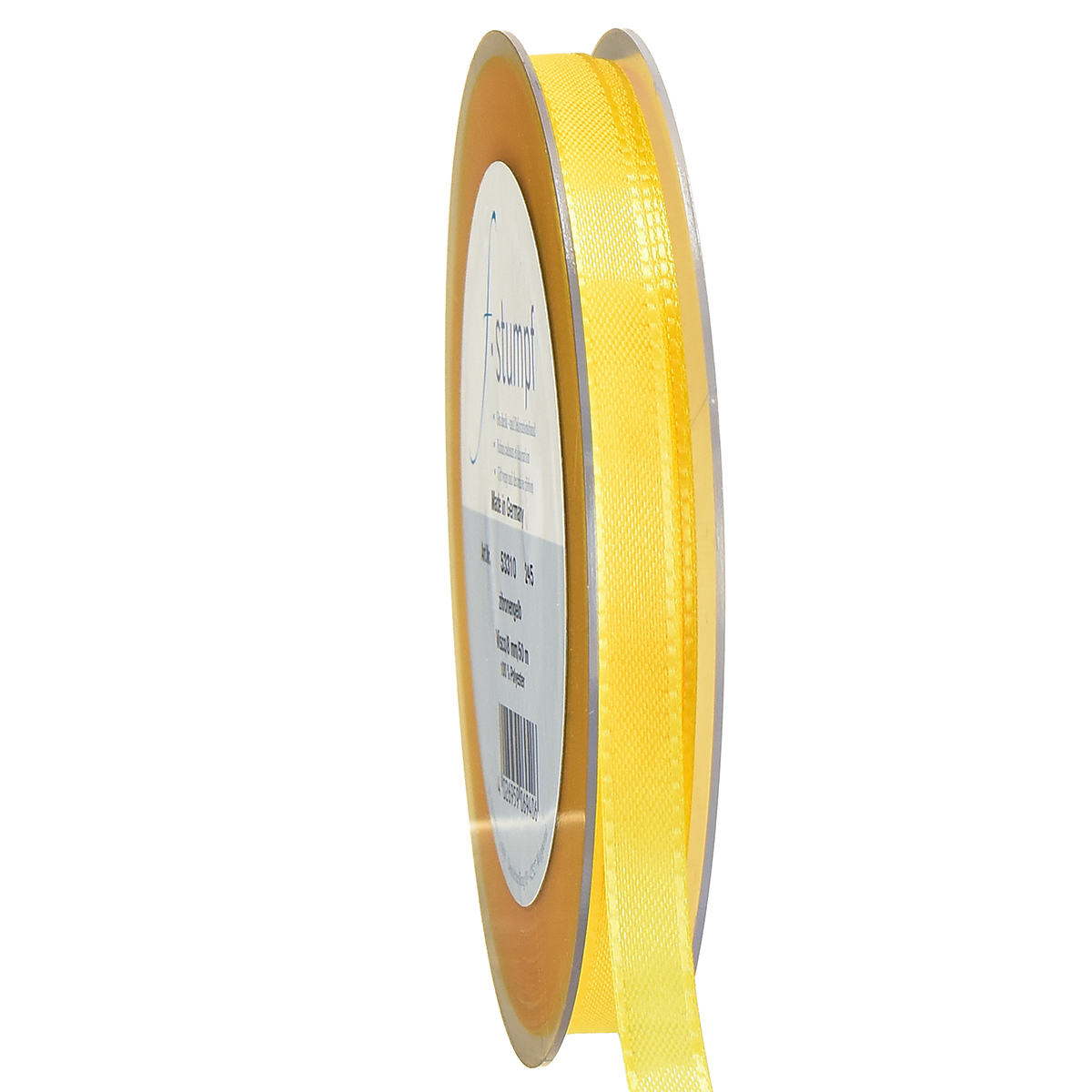 Geltona dovanų ir puošybos juostelė yra apie 50 metrų ilgio ir apie 10 milimetrų pločio. Jis pagamintas iš 100% poliamido ir yra ant plokščios plastikinės ritės.
