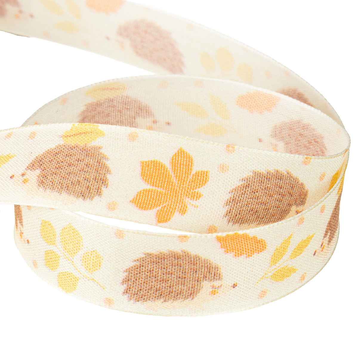 Dovanų juostelė apvado juostelė rudeninis ežiukas 15mm 18m